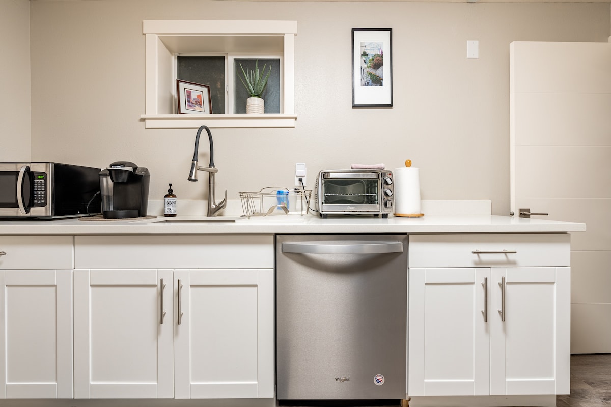 入住这间位于LYNNWOOD市中心Adwoodmall附近的独栋住宅的B单元全层套房,享受便捷的设施。 客人可以独自享受整个封闭空间,这是一间位于楼下、带独立入口的私人住宅,客人有充分的隐私权,可以独占整个关空间. 设有独立的后院、并包括一间卧室、一间客厅和一间浴室。在您入住期间,没有别人打扰。 空间宽敞,营造出温馨舒适的氛围。是家庭和专业人士短期到中期停留的理想选择,无楼梯进入,最多可供3位客人入住。 它距离5号州际公路和405号州际高速公路仅两分钟车程,交通便利。无论您是出差还是长期停留,这里都是舒适、时尚和便利的完美结合。 房子坐落在一个安静的死胡同里,交通很少,保证了隐私和步行的便利。附近有几个购物中心,包括Alderwood 购物中心,韩国超市,当地图书馆,Costco,波音工厂参观中心和许多餐馆。 -这处房产有两层,客房位于后院的一楼。 -独立入口,独立空间 -客厅配有55英寸智能电视、4人餐桌、沙发床、冰箱、洗衣机和烘干机 -带一张大床的卧室 -功能齐全的浴室 -路边停车