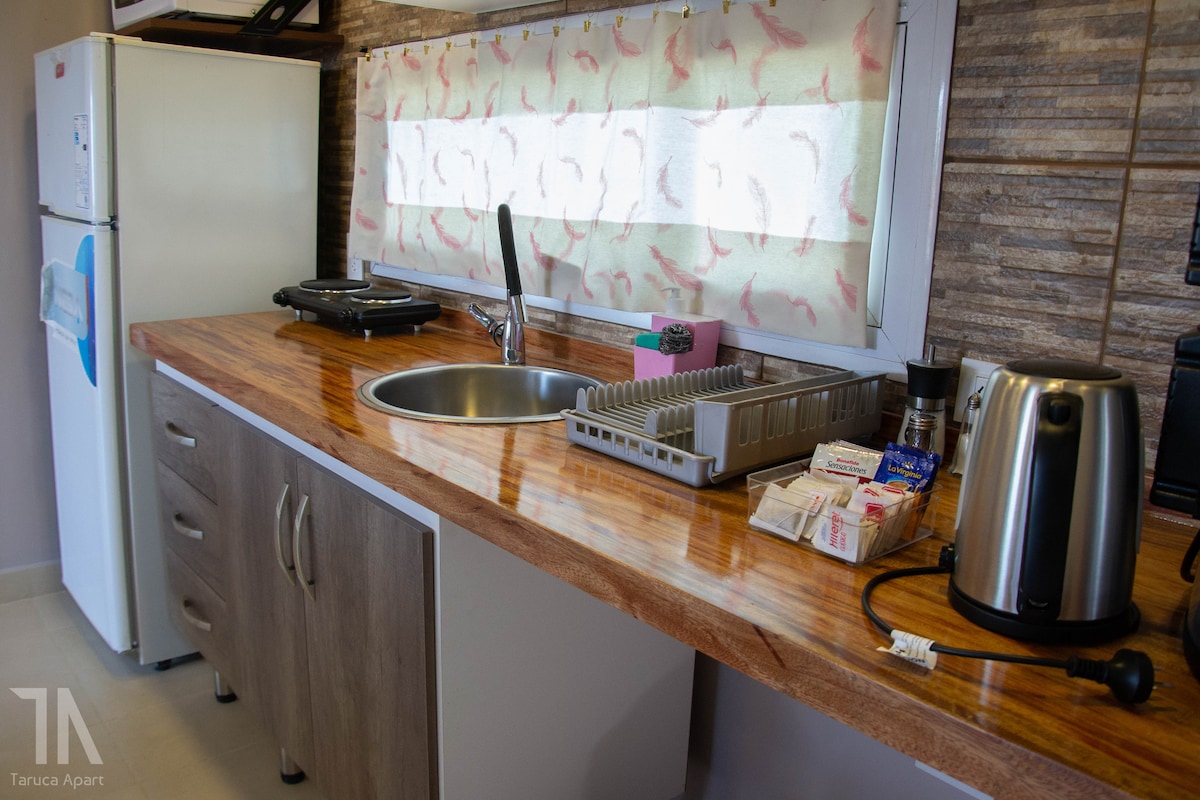 Dobro došli u Algarobo! Ovaj topao stan u Sijudad Eviti idealan je za udoban i opuštajući boravak. Ima 1 spavaću sobu, 1 kupatilo i sve što vam treba za opuštajuće iskustvo: posteljinu, klima-uređaj, TV, Wi-Fi i potpuno opremljenu kuhinju sa frižiderom, pločom za kuvanje, električnim kuvalom za vodu, priborom za jelo i posuđem. Pored toga, nalazi se na prvom spratu i ima rampu za prtljag za lak pristup. Savršeno za uživanje u pauzi pre ili posle leta.