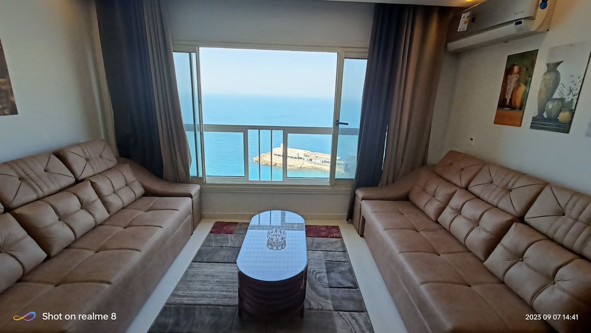 Smješten u Aleksandrijskom sportskom području, ovaj luksuzni jedinstveni dvosobni stan na obali sa neverovatnim pogledom na koji se nalazi u centru grada, u blizini svih atrakcija. - 2 spavaće sobe svaka sa bračnim krevetom. - Dnevni boravak: Sofa sa trosedom (koji se može pretvoriti u krevet), otvoren prostor za ostavljanje povezan sa integrisanim trpezarijskim prostorom - Balkon: 14 kvadratnih metara balkon sa panoramskim pogledom na Mitterrandian je savršeno mesto za posmatranje zalaska sunca - najsavremeniji kupatilo i moderna kuhinja