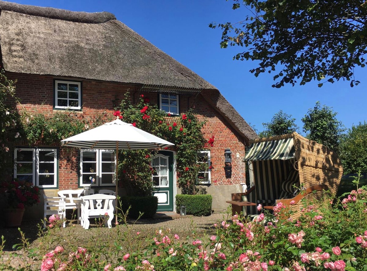 Odsjest ćete usred prelijepog ostrva Föhr u selu Midlum. Gostinjski prostor u potkrovlju na gornjem spratu moje fantastične slamnate kuće na krovu vas dočekuje. Imate sopstvenu kuhinju i kupatilo. Spavaćete u krevetu veličine 140x200. Na raspolaganju je kuhinjski kauč kao krevet (80x200 m) za trećeg gosta. Možete da ga učinite udobnim na kauču ispred televizora. Gradska taksa se mora platiti zasebno u mom smještaju u gotovini.