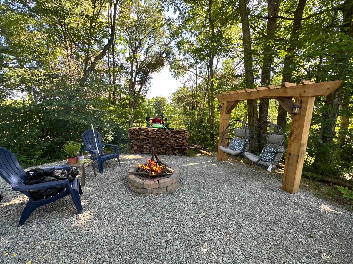 (VAŽNE INFORMACIJE: KUĆA NA DONJEM SPRATU JE U POTPUNOSTI VAŠA: međutim, mi smo na spratu; nema zajedničkih prostorija; nema KUHINJE. PRAVILA ZA KUĆNE LJUBIMCE: pogledajte detalje u odeljku „Prostor“) Smještena na 3 hektara šume, naša kuća je tiha, prostrana, udobna, privatna. Praktičnost je blago rečeno. „Downtown” Alfred, Alfred State i Alfred University su lako dostupni pješice. Vinski region Finger Lejks je udaljen 40 minuta, Državni park Lečvort („Veliki kanjon Istoka“) je udaljen oko sat vremena, a Votkins Glen je udaljen 2 sata.