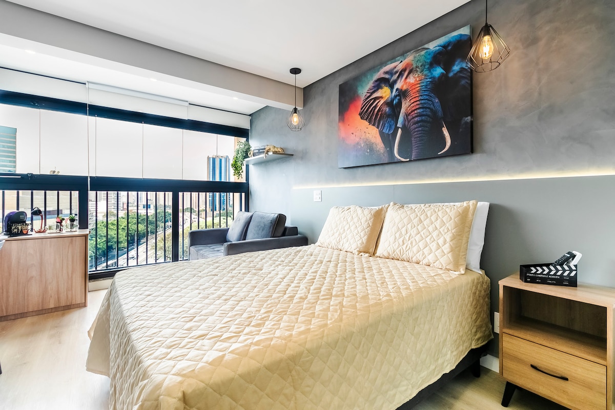 Novouređeni studio apartman, sa sopstvenim stilom, urbani i kosmopolitski. Visokokvalitetan, lijep, kreativan i na dobroj lokaciji, sa privilegovanim pogledom na 21. sprat za Allianz Parque. Pored nekoliko prodavnica, prevoznih sredstava, parkova, turističkih atrakcija i poslovnih zgrada. Studio je kompletan, sa udobnim bračnim krevetom, kuhinjom sa svim priborom, mini barom sa zamrzivačem i brzim internetom. Savršeno za ljude koji cijene nezaboravne i jedinstvene doživljaje.