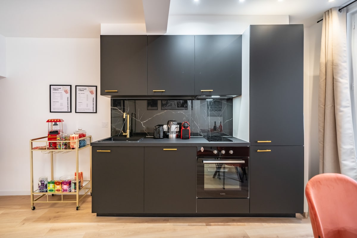 **nema KLIMA-UREĐAJA** Stan u srcu starog grada Grasa, idealno smješten u blizini parfema, umjetničkih galerija, restorana, barova i prodavnica. Uživajte u sobi pretvorenoj u bioskopsku sobu sa vrhunskom slikom i zvučnom opremom, kao i hotelskoj posteljini (bračni krevet). Savršeno za opuštanje nakon dana otkrića. Udobnost, šarm i zabava su zagarantovani u ovom jedinstvenom smještaju. Pristup +100 Blu-ray, Netflix i Disney+ 4K. Napravite kokice!