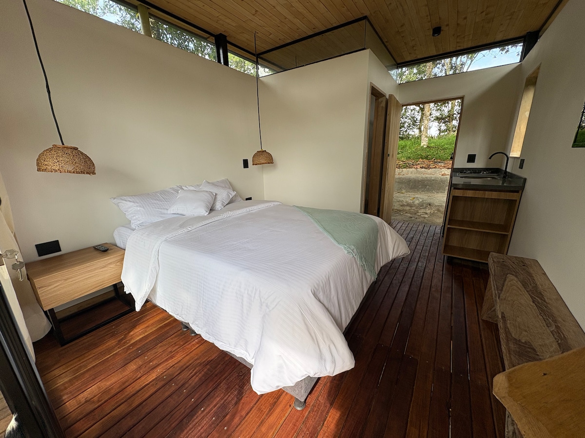 Povežite se sa prirodom na ovom nezaboravnom odmoru na samo 10 minuta od prelepog grada Filandije u Kvedu. Ekskluzivan prostor koji su dizajnirali i prisustvovali vlasnici. Naš glamping je opremljen bračnim krevetom, privatnim kupatilom integrisanim u sobu sa toplim tušem, visokim udobnim nameštajem, visećom mrežom, terasom i prostorom za meditaciju. Spektakularan panoramski pogled, romantična atmosfera da se opustite i uživate kao par.