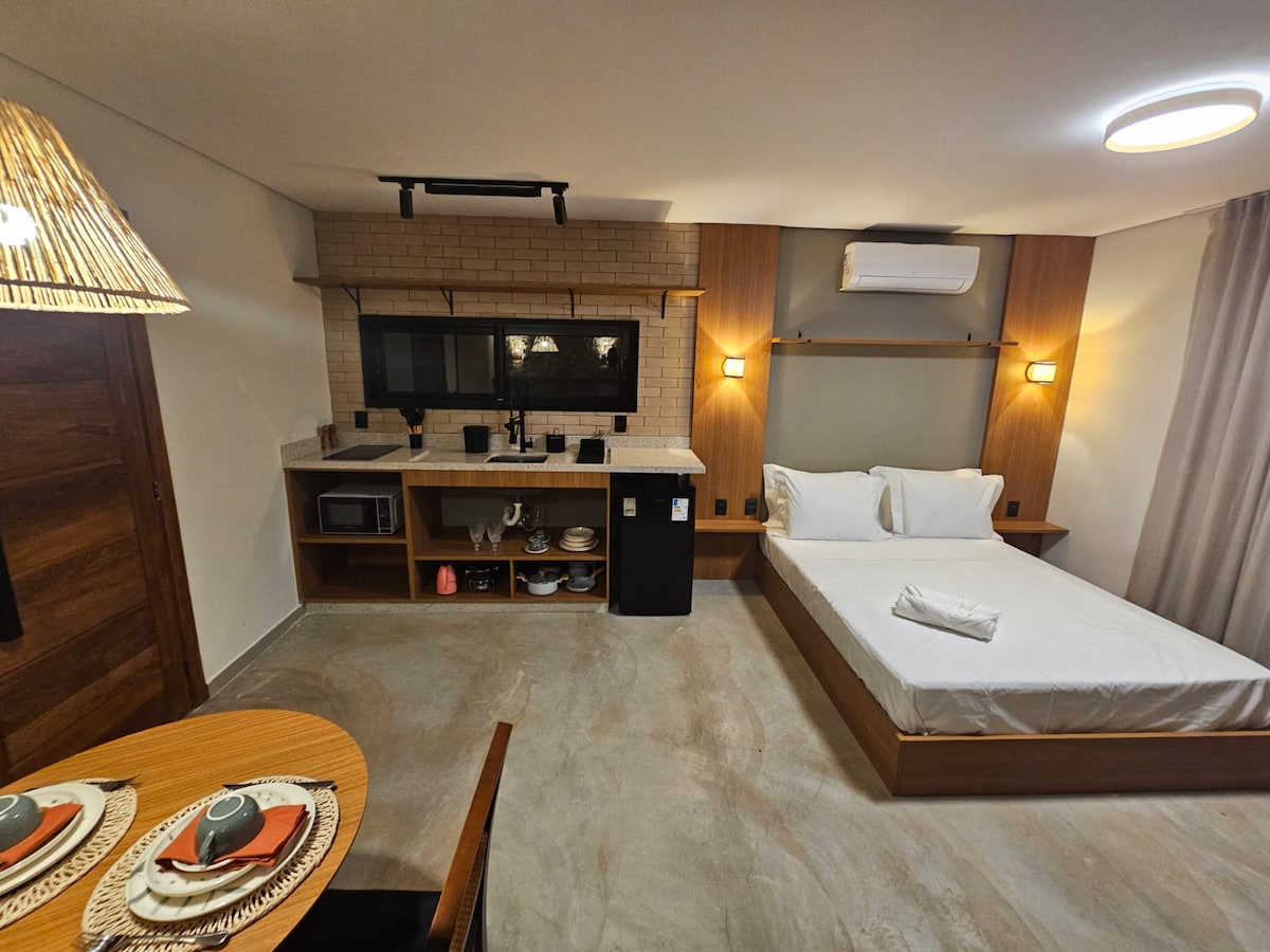 Brisa do Cerrado Studios reúne oito studios novos, minimalistas e contemporâneos, projetados para oferecer conforto acima da média em Alto Paraíso. Localizados no bairro Eldorado, a 2 km da avenida principal, estão próximos de cafés, restaurantes e lojas. Cada studio conta com ar-condicionado, cozinha completa, estacionamento e acabamento de alta qualidade — ideal para quem busca praticidade, beleza e bem-estar na Chapada dos Veadeiros.