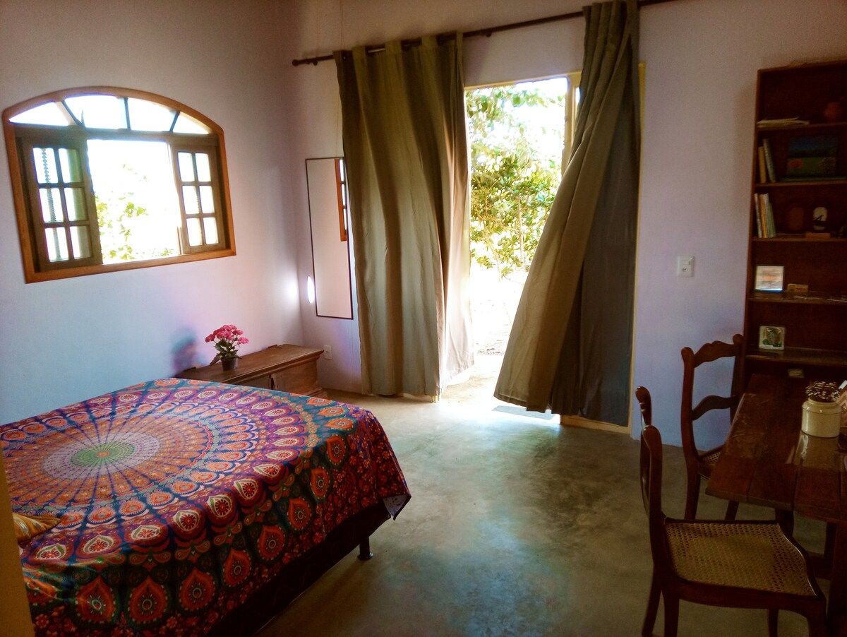 5 km od Sao Žorža, u atraktivnoj dolini das Pedras, koja ima 2 km staza sa nekoliko prirodnih bazena u Rio Sao Migelu. Ostanite u udobnosti i privatnosti. Tradicionalna biokonstrukcija sa tehnikama i materijalima iz regiona. Našim gostima je pristup reci uključen. Nevjerovatan pogled s balkona na Serra do Segredo. Ptice pevaju ujutru i uranjanje u očuvani Čerrado u regionu. Ova planinska kuća ima kuhinju opremljenu priborom, frižiderom i šporetom.
