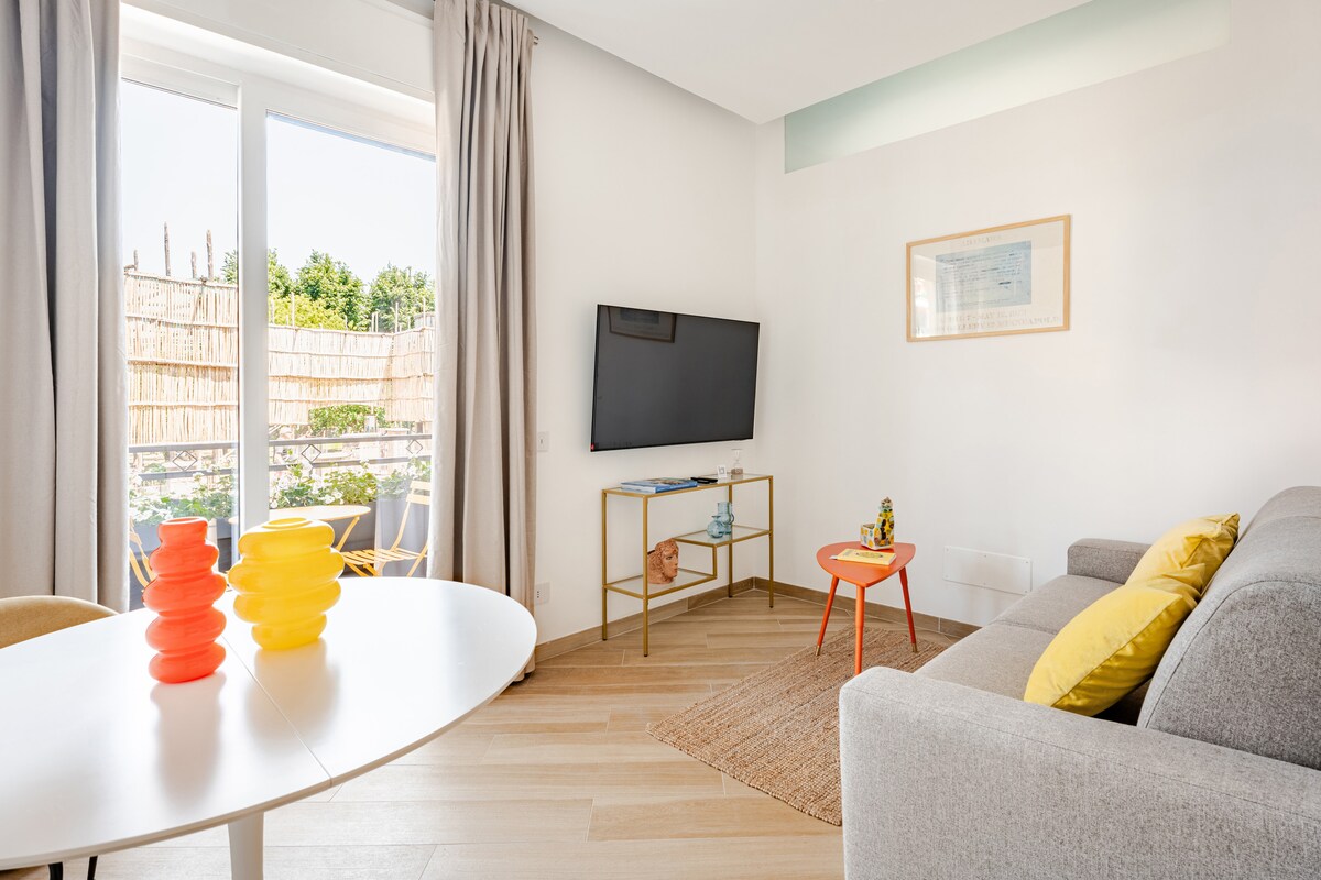 Elegantan i potpuno novi stan u srcu Sorenta sa dušom koja miriše na limun, jer gleda na najstariji limun u gradu sa dvije terase. Prostrani dnevni boravak sa prefinjenim namještajem i udobnošću. Sky TV. Uživajte u luksuzu da imate sve nadohvat ruke, supermarkete, železničke i autobuske stanice, parking, barove i tipične restorane. Provedite jedinstveni odmor u elegantnom i udobnom prostoru sa detaljima inspirisanim savremenom umjetnošću i dizajnom. Na odmoru ste, dišite!