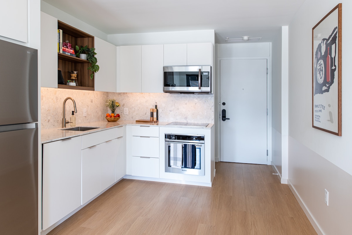 Pozdravite svoj elegantan, jednosoban stan daleko od kuće. Odmah ćete se osećati kao kod kuće u svojoj jedinici, sa Samsung Smart TV-om, Sonosom, potrebnim priborom za kuvanje i ukusno udobnom posteljinom. Ova jedinica je opremljena svime što vam je potrebno da uđete u svoju jedinicu i odmah se osećate kao kod kuće. Imamo udobnu hotelsku posteljinu, elegantan namještaj i ogromne prozore koji propuštaju svu sunčevu svjetlost koju biste mogli da poželite.