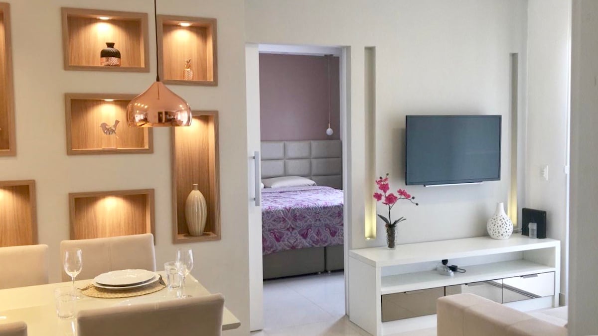 Prostran, potpuno namješten stan sa svim sadržajima, garažom i nalazi se u centru grada. Smart TV sa Telecine/HBO, Netflix i Globoplay. Mašina za pranje i sušenje veša.
