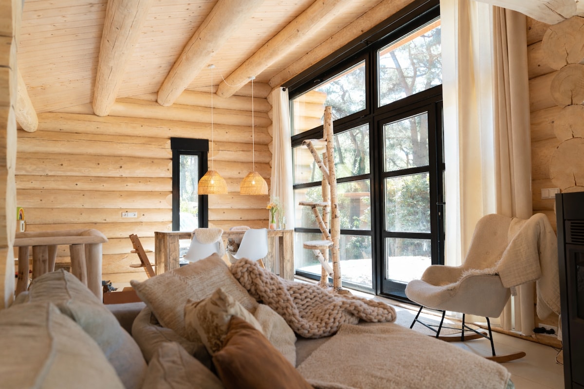 Fijne blokhut met zwembad, hottub en houtkachel.
