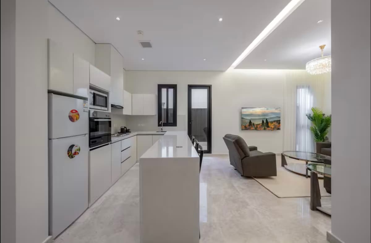 شقة فاخرة في شمال الرياض ومصممة لتكون مختلفة و أنيقة بحديقة خارجية ، تتمتع بخصوصية تامة ودخول ذاتي . موقع استراتيجي 📍 تقع على بعد : 15 دقيقة بالسيارة من موسم الرياض.🌟 10 دقائق من الرياض بارك. 🛍️ 13 دقيقة من مركز الملك عبد الله المالي. 🏙️ 18 دقيقة من مطار الملك خالد الدولي.🛫 تتكون من غرفة وصالة ومطبخ أمريكي وحديقة خارجية خاصة.