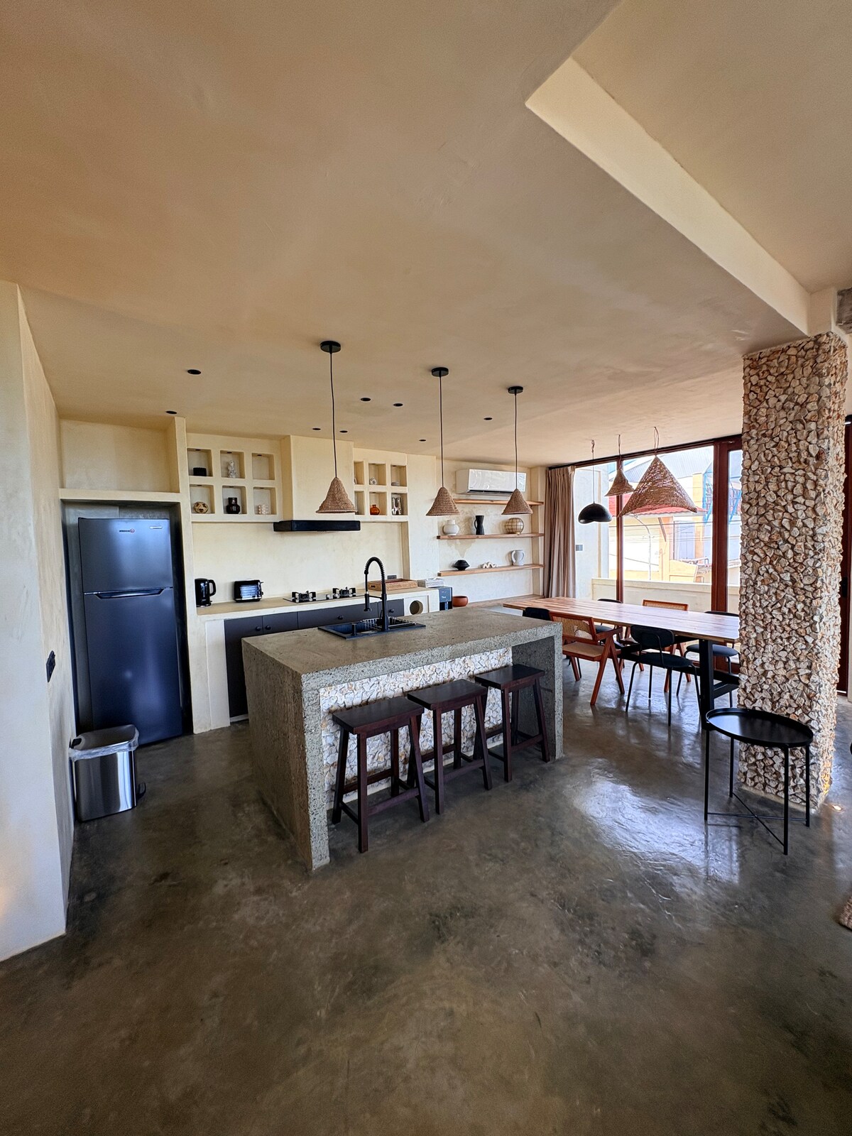 Udoban život na ostrvu. Tri velike spavaće sobe sa bračnim krevetima i mekanim dušecima sa jastucima. Otvorena kuhinja, dnevni boravak i trpezarija sa TV-om od 55 inča i pametnim zvučnikom Mi. Starlink Wi-Fi sa brzinom do 200 MBps. Velika svijetla kupatila s toplom vodom i dobrim pritiskom vode. Na zahtev se mogu iznajmiti skuteri. Izuzetno dobra lokacija, ali djeluje izolovano i privatno. Do plaže se stiže peške, najbolji restorani i kafići.