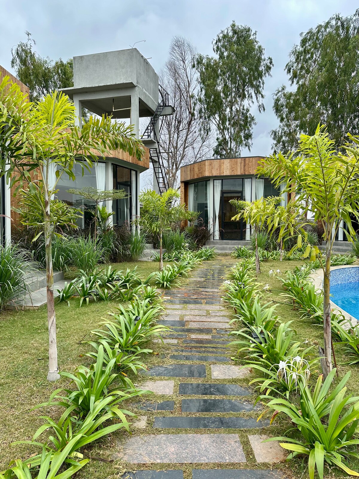 Pobjegnite u našu ograđenu zajednicu od 36 hektara sa privatnim seoskim kućama okruženim bujnim zelenilom. Vaš smještaj uključuje 1 udobnu sobu na osami bez zajedničkih zidova za potpunu privatnost. Uživajte u bazenu, posmatranju ptica i mirnim šetnjama u prirodi. Uživajte u autentičnoj lokalnoj kuhinji napravljenoj od svježih sastojaka. Naš smještaj prima kućne ljubimce i ima poseban bazen za vaše krznene prijatelje. Idealno za miran odmor ili posebne događaje kao što su snimanje prije vjenčanja i joga. Obratite nam se za rezervacije grupa/događaja