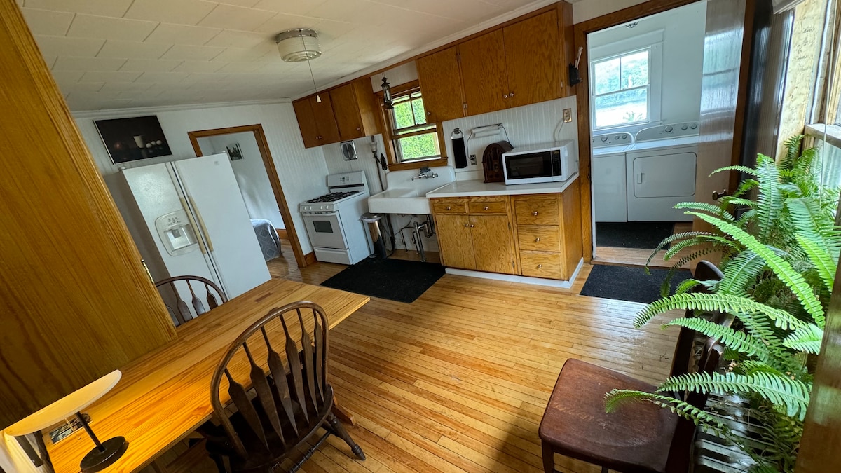 Doživite ovo 2BR/2BA utočište, savršeno za parove i male porodice. Smješten u prirodi, ovaj smještaj na brdu nudi privatnost, modernu udobnost i miran ambijent. Opustite se pored kamina, ognjišta, opustite se na terasi ili istražite prirodu. Bez obzira na to da li tražite avanturu ili opuštanje u prirodi, ovo skrovište je savršena baza za vaš sljedeći odmor. Porodice od 5 ili 6 godina mogu da se smjeste sa sofom na razvlačenje za bračni krevet.