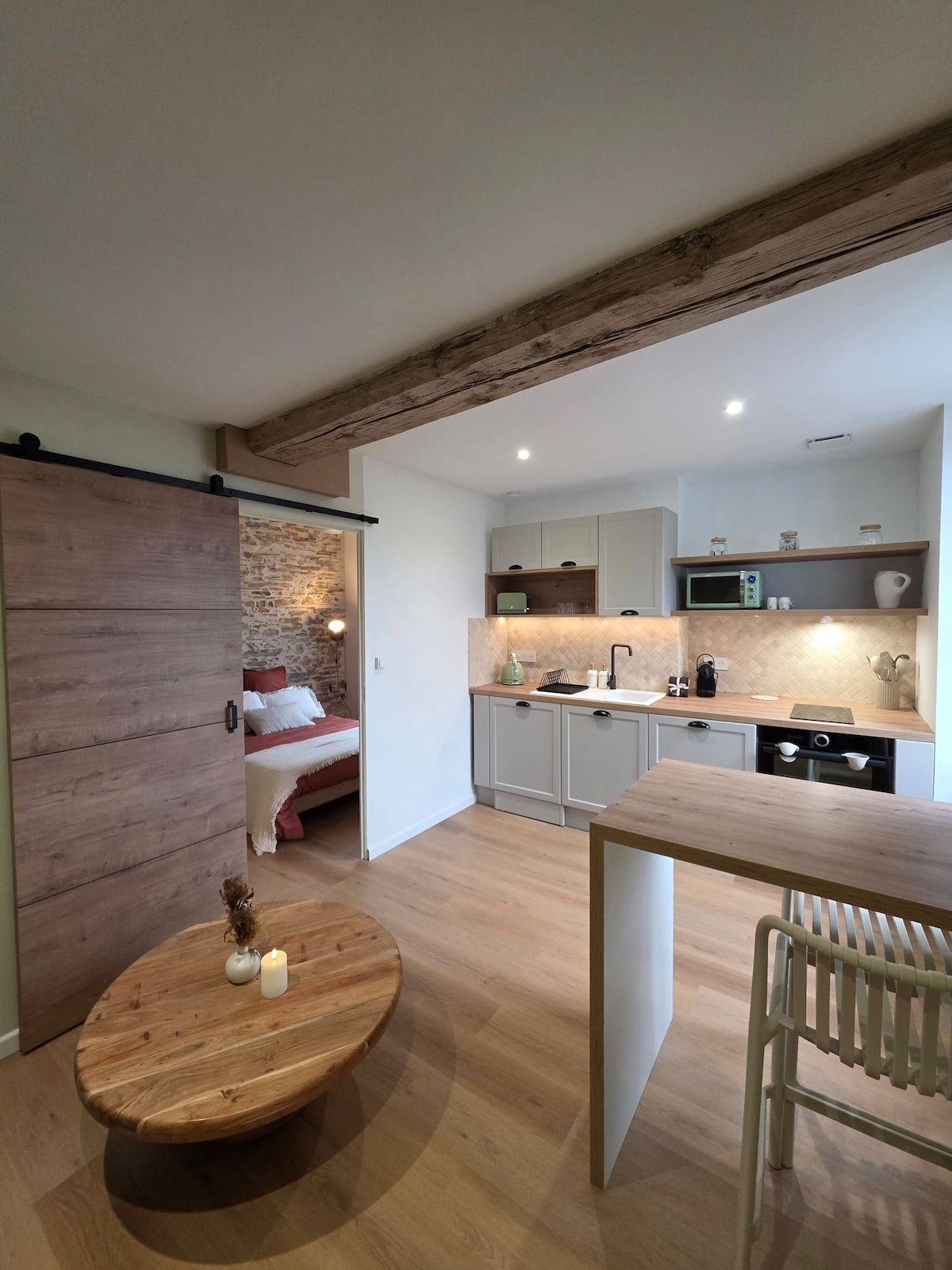 ✨ Uživajte u svijetlom stanu koji kombinuje industrijski stil i udobnost ✨ 🛏 Udobna soba s udobnim krevetom i modernim kupatilom, savršena za vašu privatnost. 🛋 Prostrana dnevna soba s toplim okruženjem. 🍽 Potpuno opremljena otvorena kuhinja, idealna za vaše obroke. 🌞 Veliki prozori kupaju svaku prostoriju s prirodnim svjetlom. Starinski 🎨 drveni podovi, Trélazé škriljevac i originalne slike, za jedinstven karakter. 📍 Odlična lokacija, savršena za opuštajući ili produktivan boravak.