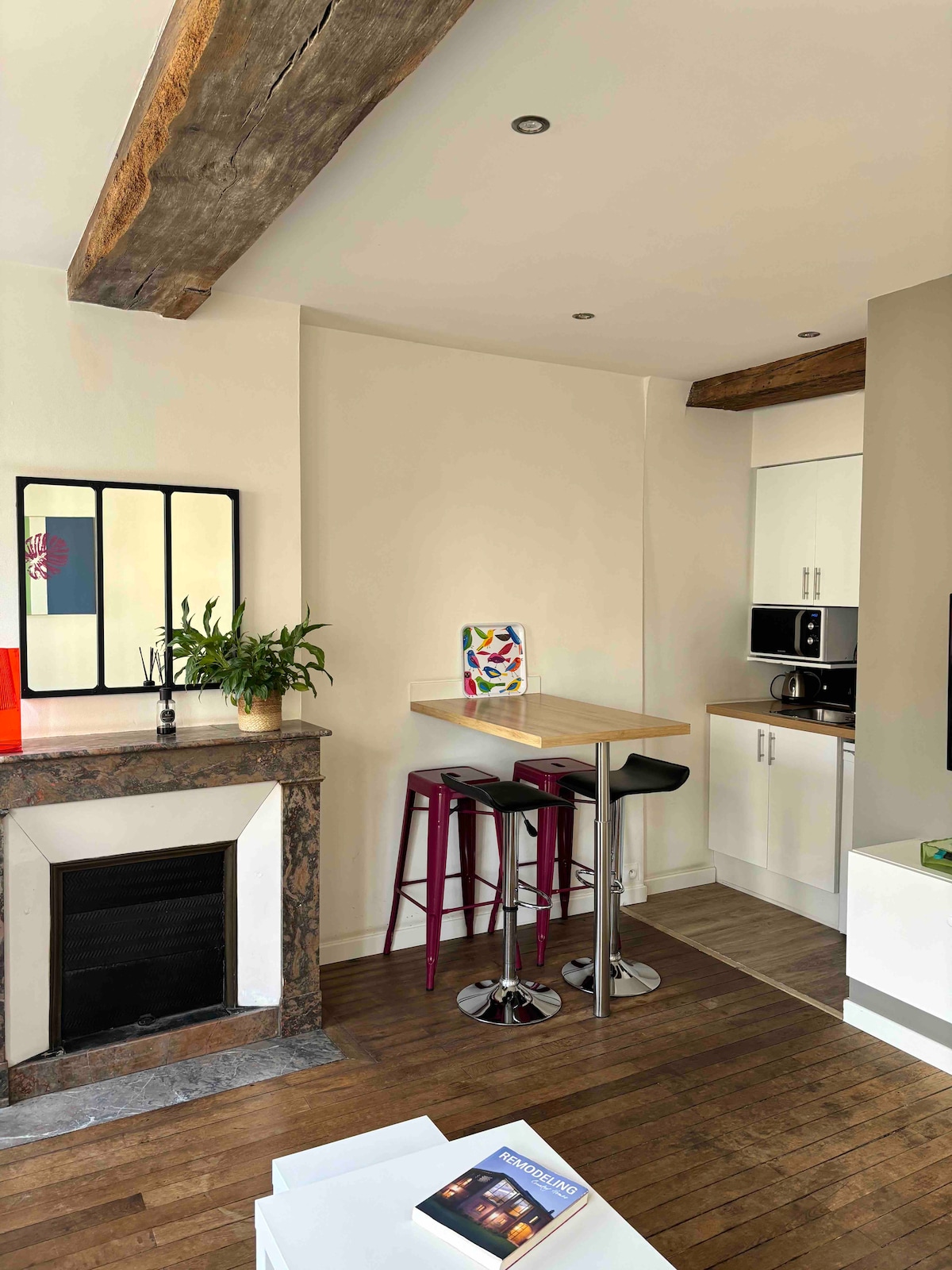 Appartement T2 de 30m2, très lumineux, qui offre une vue sur la charmante place du Pilori située en hyper centre de la ville. La chambre est située côté cour donc est au calme. L’appartement est à 3 minutes à pied du tramway et des bus, à 5 minutes à pied du centre des congrès et à 10-15 minutes à pied de la gare. Le stationnement est possible à 1 min à pied de l’appartement (parking payant du lundi au samedi de 9h à 19h) et un stationnement gratuit est possible à 7 min à pied. FR8VTDBE