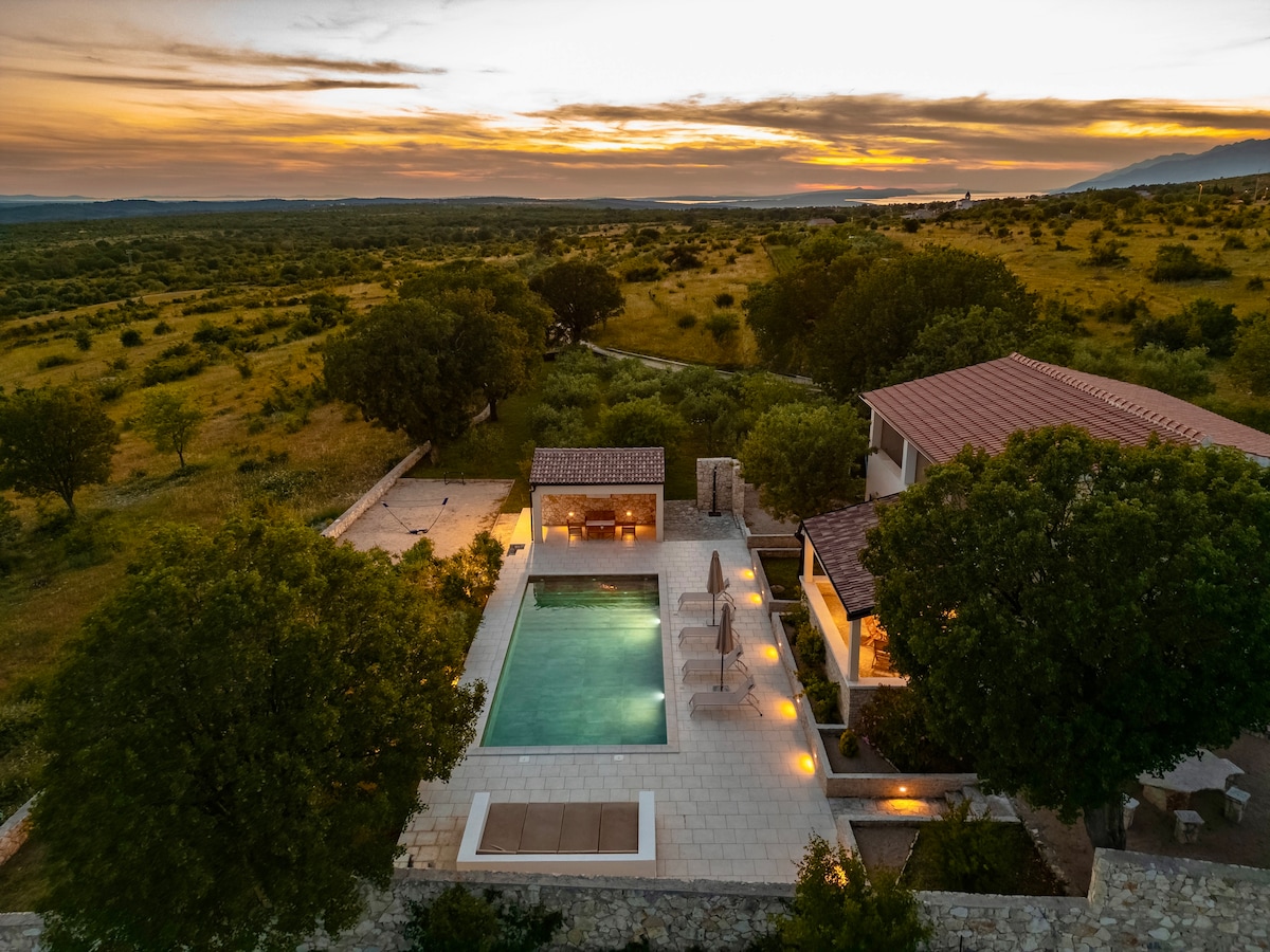 This beautiful estate is not only exceptionally unique, but also has every modern luxury necessary to feel more than comfortable. Situated in the heart of nature, we provide everything you need to enjoy your stay. The Holiday House Lucija is located in the Kvarner Bay above Zavratnica in the Nature Park "Velebit" on the edge of the National Park Northern Velebit. New house built in 2018, 4 km from the sea, with stunning views of the islands of Rab, Pag, Losinj and Cres.