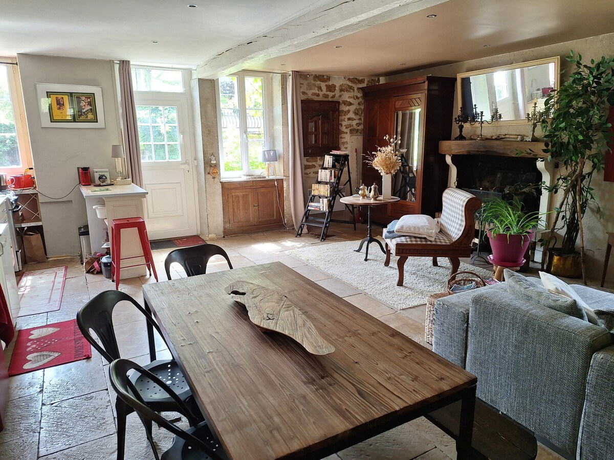 Prelijepa zanatska seoska kuća! Ovo atipično mjesto, napravljeno s ljubavlju i kreativnošću, promijeniće vaš ambijent za vrijeme vašeg boravka. Potpuno opremljen, možete uživati u udobnosti enterijera i velikoj spoljnoj terasi sa pogledom na kanal Canal du Nivernais. Dođite i opustite se za vikend ili uživajte u sedmici odmora u Burgundiji. Nalazi se u srcu Iona, u blizini Auxerre, Chablis, Avallon, Vezelay i Puisayes. Da biste dovršili boravak, zašto ne biste išli na dobru masažu!