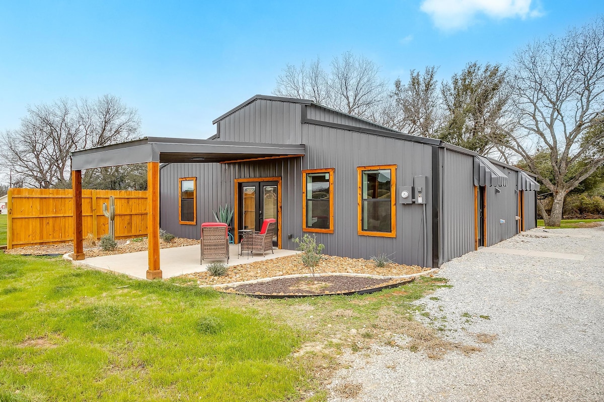 Tražite jedinstven objekat na selu, ali u blizini gradskih sadržaja? Dobro došli u The Lonely Bull - a Luxury 40ft Shipping Container Home! Opustite se u hidromasažnoj kadi ili gledajte u zvijezde na terasi na krovu! Nalazi se 10 minuta od I-20 i 15 minuta od istorijskog centra Vederforda i Granberija. NAPOMENA: ovo je jedna od 2 jedinice u objektu. Druga jedinica za iznajmljivanje je The Tiny 'Tainer (kontejner od 6 metara, za 2 osobe). Izjava o odricanju od odgovornosti: da, moguće je čuti buku na putu. Isključićete ga.