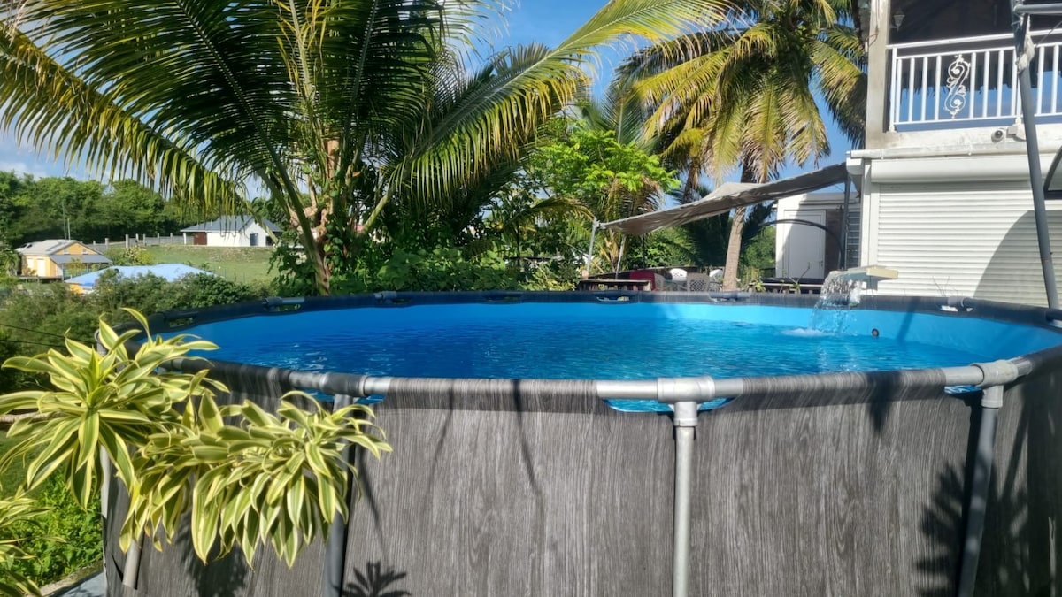 Dobro došli u naš elegantni i opuštajući bungalov u Sent-Enu, Gvadalupe. Uživajte u privatnom bazenu okruženom zelenilom, savršenom za opuštajuće trenutke u privatnosti. Samo nekoliko minuta od nebeskih plaža i svih sadržaja , naše utočište mira nudi najbolje od oba svijeta. Idealan za parove ili porodični odmor, naš smještaj kombinuje modernu udobnost i tropski šarm.