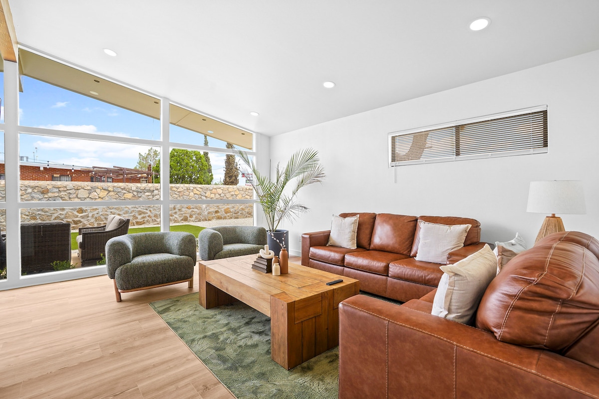 Zapadni El Paso. Doživite urbani cvijet, zadivljujuću rezidenciju El Paso u kojoj se moderna udobnost susreće s umjetničkim stilom. Ova kuća sa 4 spavaće sobe, 2 kupatila i 3 TV-a, smještena na praktičnoj zapadnoj strani grada, nalazi se nedaleko od autoputa i savršena je za jednostavno putovanje. Igrajte se u klimatizovanoj prostoriji za igre, uživajte u filmovima na TV-u s projekcijom i da, vaši kućni ljubimci su dobrodošli ovdje! Doživite udobnost umotana u živopisni stil.