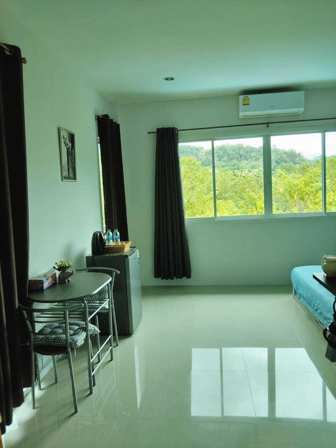 This room has one big bed, TV, air conditioning, patio, shower, toilet, glasses, shower gel, shampoo, beach mat, tea, coffee, kettle and wardrobe. We have bicycles, motorbikes and cars for rent. We can arrange transfers from Krabi and Phuket airports with the best prices Our reception open everyday 24/7 Daily free cleaning and free water In this room you can spend a romantic vacation or come with your family.