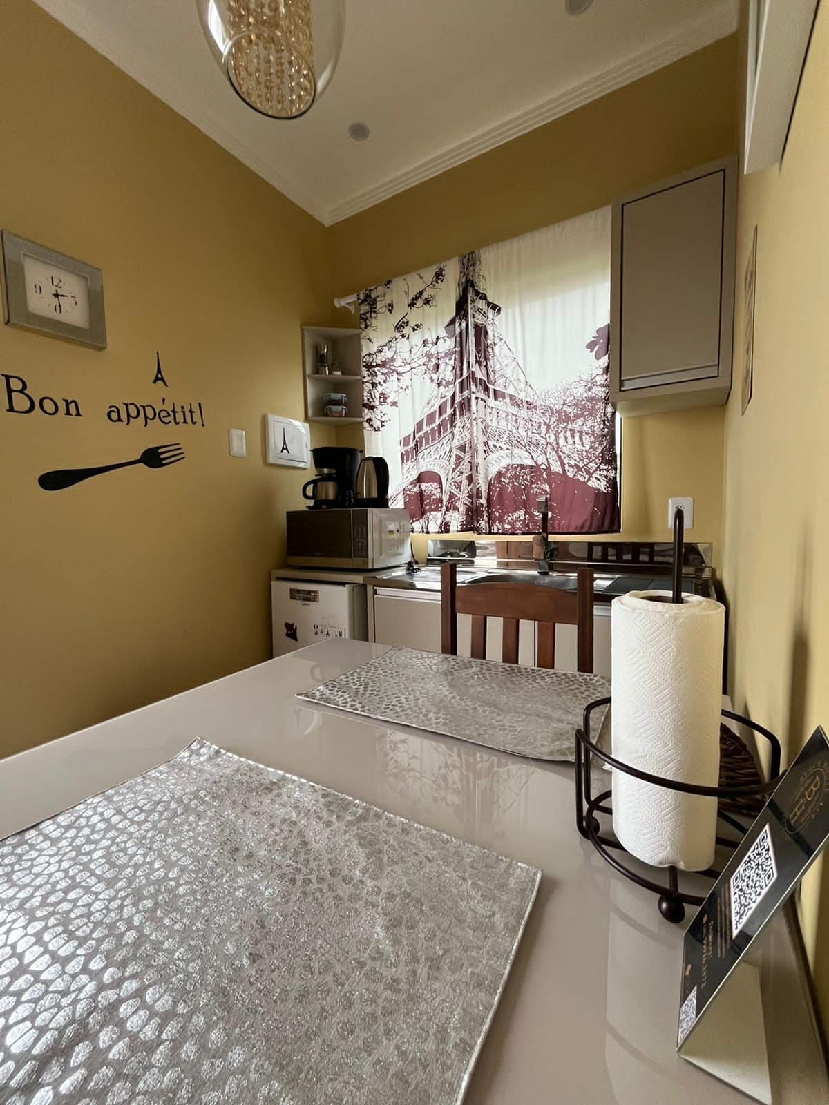 O chalé oferece todo o conforto para uma estadia relaxante e sem preocupações. Disponibilizamos roupas de cama e banho de alta qualidade, além de roupões e pantufas, pensados para proporcionar uma experiência ainda mais aconchegante. Para momentos de autocuidado, os hóspedes contam com amenities especiais, como sais de banho, espuma de banho. A cozinha é completa e totalmente equipada, com forno, frigobar, torradeira, chaleira elétrica.