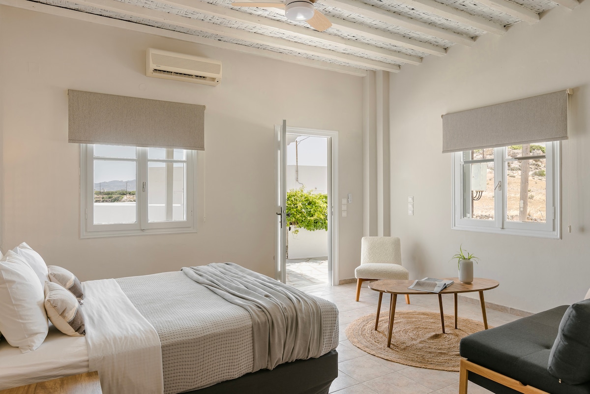 Doživite zaista jedinstven boravak u našoj kikladskoj kući na moru, gde se istorija susreće sa udobnošću. Smješten na padini brda, ovo izvanredno utočište ima krevet izgrađen unutar drevnih kamenih zidina. Spavajte okruženi odjecima prošlosti, dok vas umirujući zvuci mora uljuljku u mirnom snu. Probudite se uz pogled koji oduzima dah iz svakog ugla, dok sunce baca svoj zlatni sjaj na svjetlucave vode. Prekrasan pogled na more okružuje vas, pozivajući mir i spokoj.