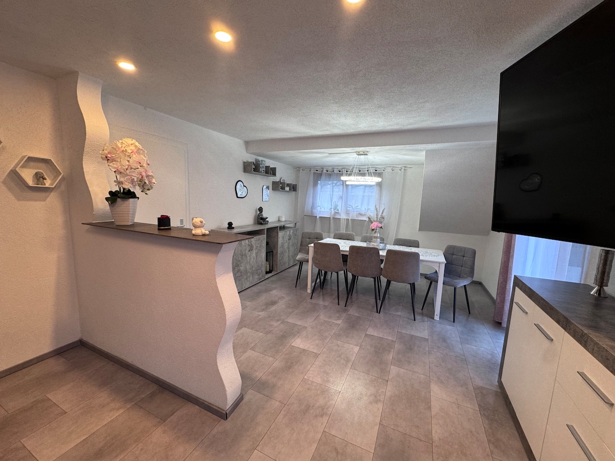 Otkrijte luksuz prikladan za porodice u našoj modernoj kući za jednu porodicu u srcu Ingelhajma. Sa 4 spavaće sobe, 2,5 kupatila i vrhunskom završnom obradom. Uživajte u terasi za sunčanje, kaminu, punjaču za električna vozila i opremi za vježbanje. Ostanite povezani sa izuzetno brzim internetom i dva namjenska prostora za rad. Ekološki prihvatljiv sa fotonaponskim i geotermalnim sistemima. Pješice do željezničke stanice Ingelhajm i Boehringer Ingelhajm. Savršeno za dugoročne boravke i istraživanje prelijepog područja Rheinhessen.