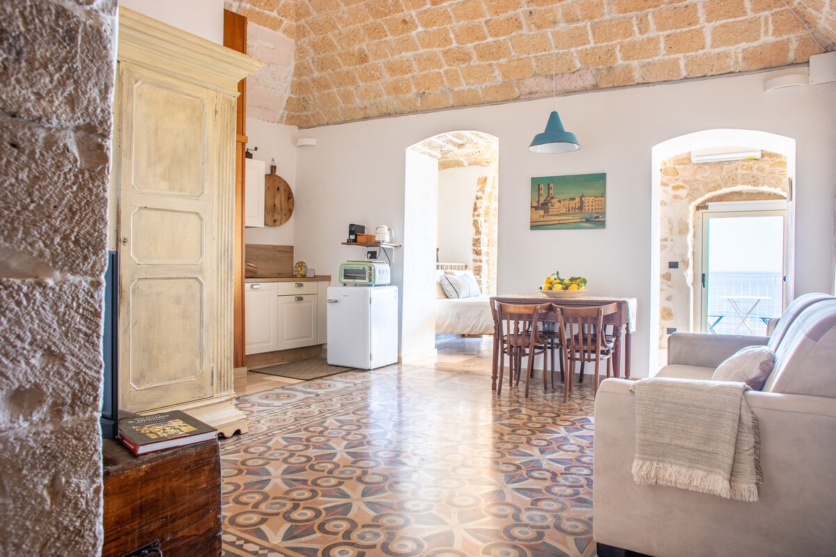 CIS: BR07401291000000188 NIN: IT074012B400033730 Doživite čaroban osjećaj boravka između prošlosti i sadašnjosti - to je istorijski dom! Starinski podovi i kameni zidovi su pozadina okruženja opremljenog dizajnerskim predmetima, starom keramikom i lokalnim namještajem. Velika privatna terasa, sa solarijumom i toplim tušem, će vas oduševiti: možete se opustiti uz čašu vina u sumrak, uživati na suncu na udobnim ležaljkama ili pripremiti večeru u čarobnoj apulijskoj atmosferi.