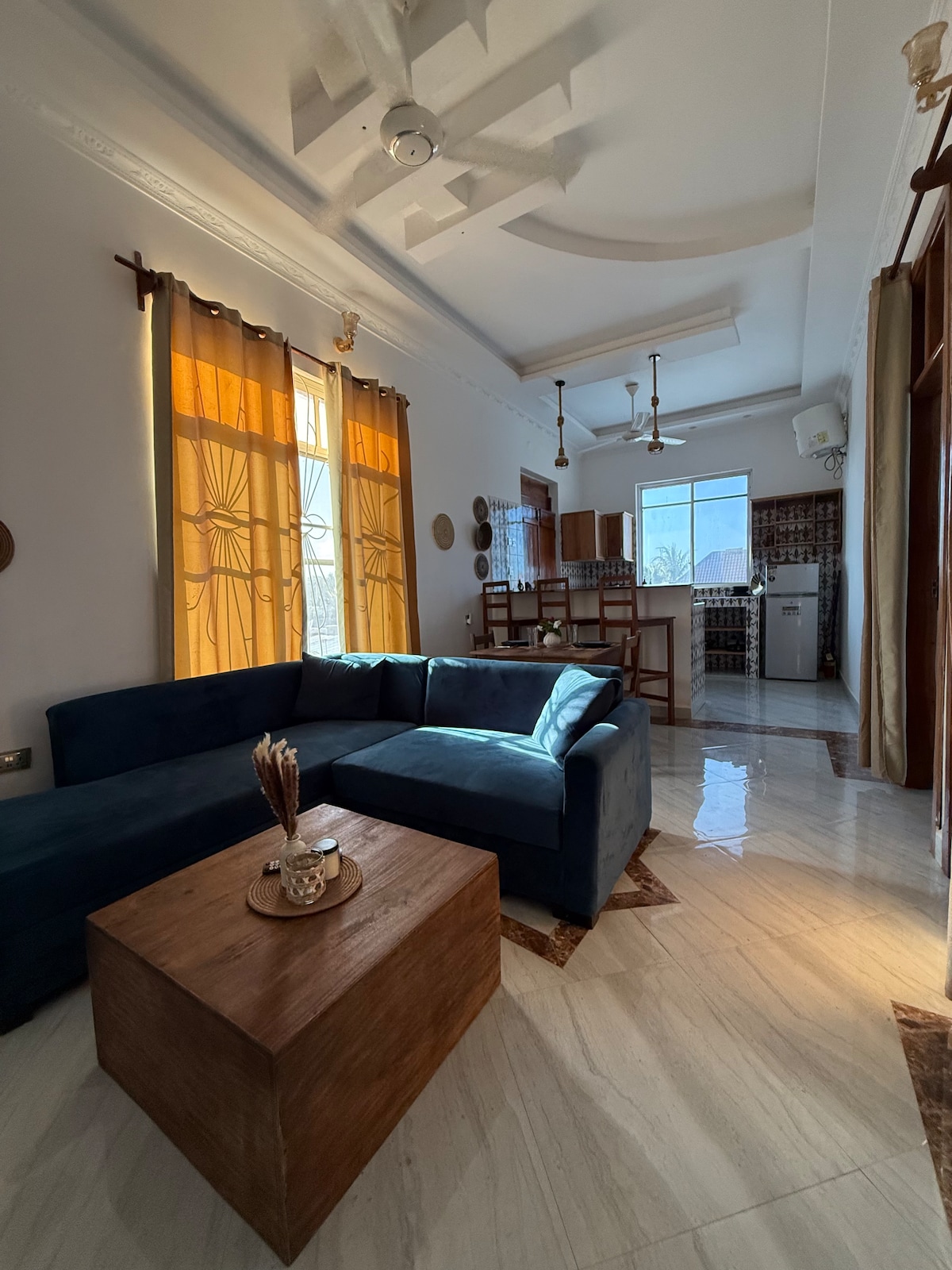 Ova svijetla i prostrana vila ima mali bračni krevet u prizemlju sa čajnom kuhinjom. Vodi do ogromne luksuzne spavaće sobe, kreveta od 2 metra, spavaće sobe otvorenog tipa sa predivnim balkonom iznad vile Umoja. To je savršeno mjesto za istraživanje bijelih pješčanih plaža, barova i restorana Paje, udaljenih 5 minuta hoda i 30 sekundi hoda do glavnog puta. Imamo svjetlovodni internet i generator tokom večeri ako nestane struje.