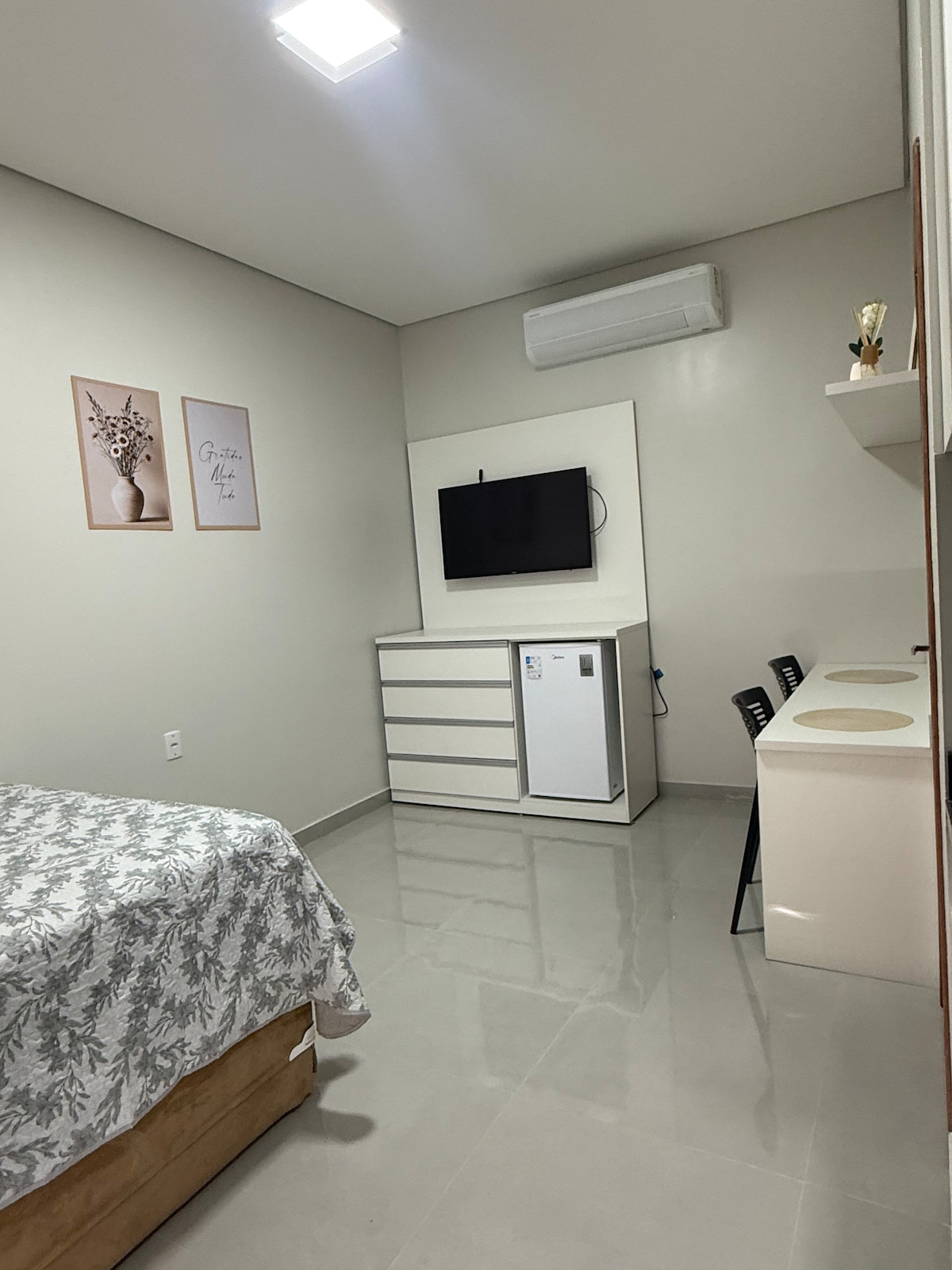 Não é um quarto compartilhado em uma casa, o local é totalmente privado ao lado de outros apartamentos, é uma Suite moderna, bem localizada em uma das principais avenidas da cidade, uma opção mais econômica, sem cozinha, mas perfeita pra quem quer conforto e tranquilidade, estacionamento monitorado por câmeras em frente ao prédio e contém lavanderia disponível pra reservas a partir de 5 dias.