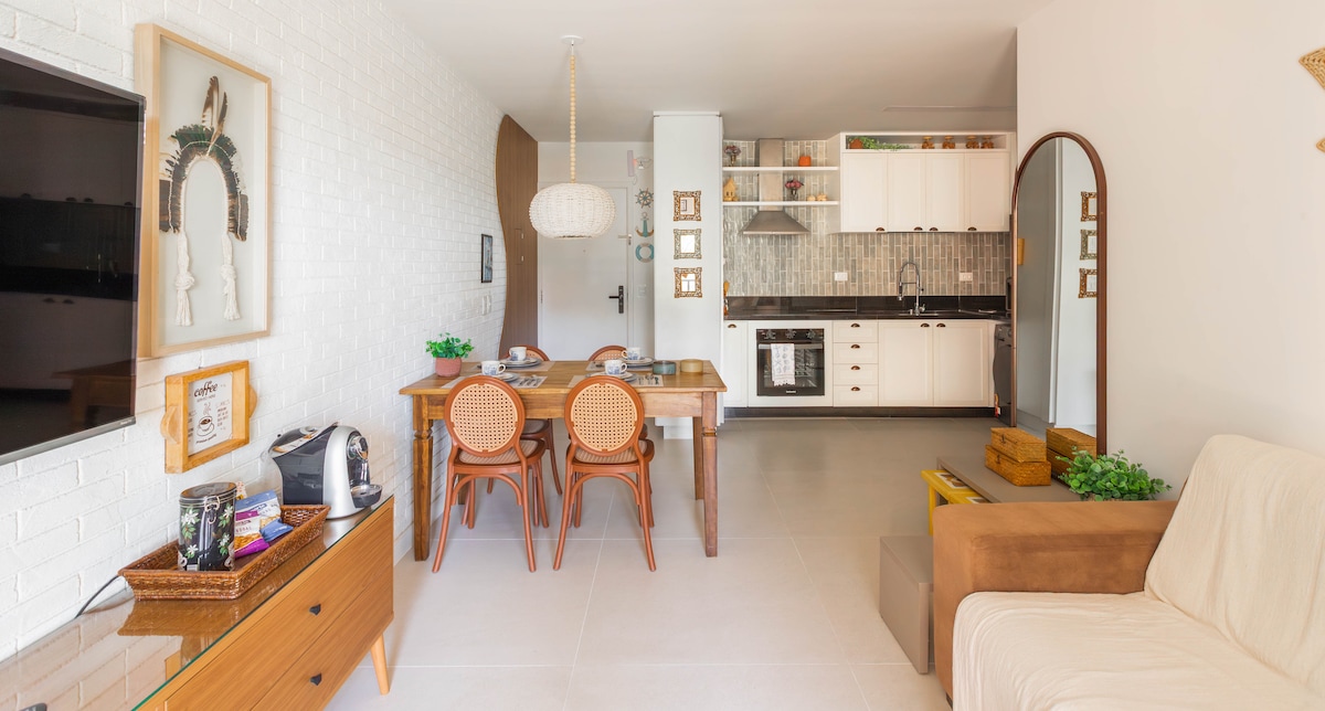 Complete 45m2 apartment in a condominium with complete leisure area, security and comfort, designed for short and long stays. Perfect for couples, people traveling in a group for leisure/work or families with children. Structure for up to 4 people. We are 1km from Beach Park with a privileged view of the sea and the region. Pharmacies, bakeries, markets, restaurants just a step away. The best value for money in the region for those who want to be well located with comfort and quality.