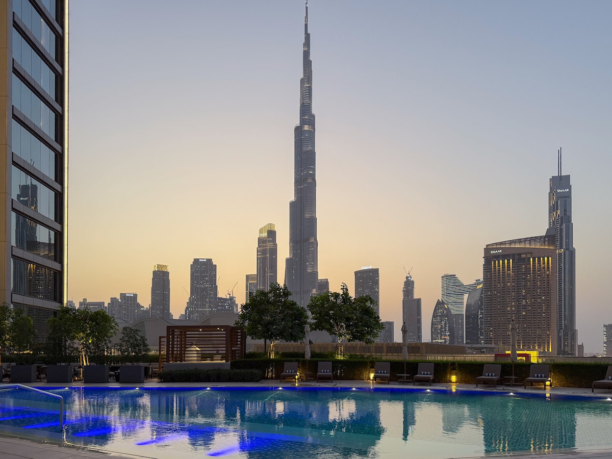 Otkrijte jedinstven smještaj u našem potpuno novom 1BR stanu u Novom tornju EMAAR, sa nesavršenom vabi sabi temom. Uživajte u pogledu koji oduzima dah na Burdž Kalifu i tržni centar Dubai sa privatne osmatračnice, udaljene samo 3 minuta hoda. Uživajte u ekskluzivnom pristupu privatnoj vidikovcu sa zadivljujućim pogledom na fontane Dubai i Burdž Kalifu. Nevjerovatna lokacija, ovaj luksuzni smještaj spaja udobnost, zadivljujući pogled i nenadmašnu praktičnost.