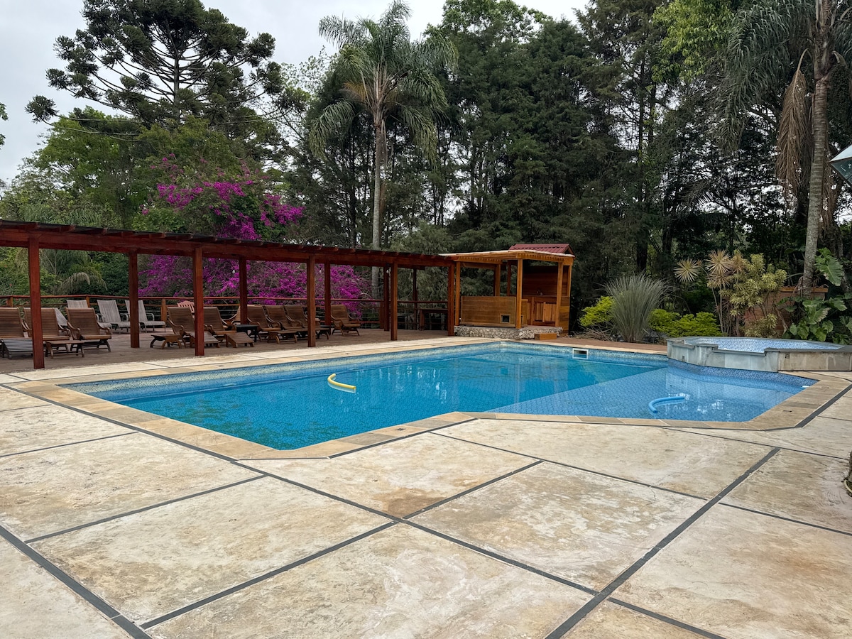 Seoska kuća u klasičnom stilu, smeštena u ograđenoj zajednici (24-časovni portir i obezbeđenje) 52 km od autoputa Raposo Tavares. Potpuno asfaltiran pristup 300m od Pravilnika. Kuća s pogledom na planine, sa mnogo zelenila i planinske klime. Udobna kuća sa centralnim grijanjem, bazenom, kaminom, roštiljem i hidromasažnom kadom. Sa internetom, Wi-Fi mrežom, dva kablovska televizora i Netflix-om.
