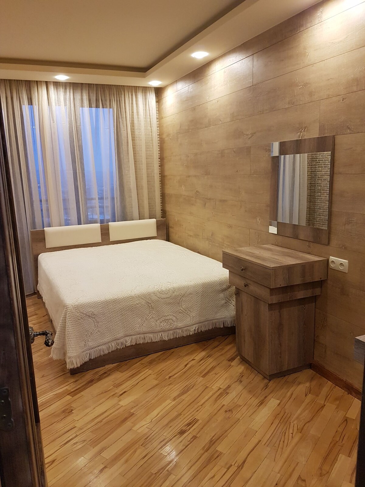 2-х комнатные просторные солнечные аппартаменты площадью 65 кв.м с одной спальней вмещают до 4-х человек. Аппартаменты оснащены необходимой современной бытовой техникой.В пешей доступности находятся исторические достопримечательности, а также развлекательные центры: зоопарк,аквапарк, ботанический сад,рестораны,кафе,рынок,а также банки. Аппартаменты находятся в 5 км от площади Республики в 10 мин езды на машине, стоимость такси 1,5-2$. Возможен трансфер от и до аэропорта за дополнительную плату.