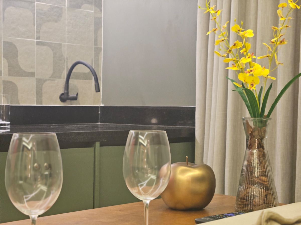 Sinta-se em casa neste flat moderno e sofisticado, vizinho ao Complexo Órion e aos melhores restaurantes. No encontro entre o St. Marista, St. Bueno e St. Oeste. Ideal para quem busca conforto e boa localização, sem abrir mão da praticidade de hotel. Aqui você descansa em roupas de cama de excelente qualidade e toalhas 100% Algodão Para quem é apaixonado por café, máquina Nespresso com cápsulas de boas-vindas, além de cafeteira e pó de café selecionado para quem prefere o método tradicional.