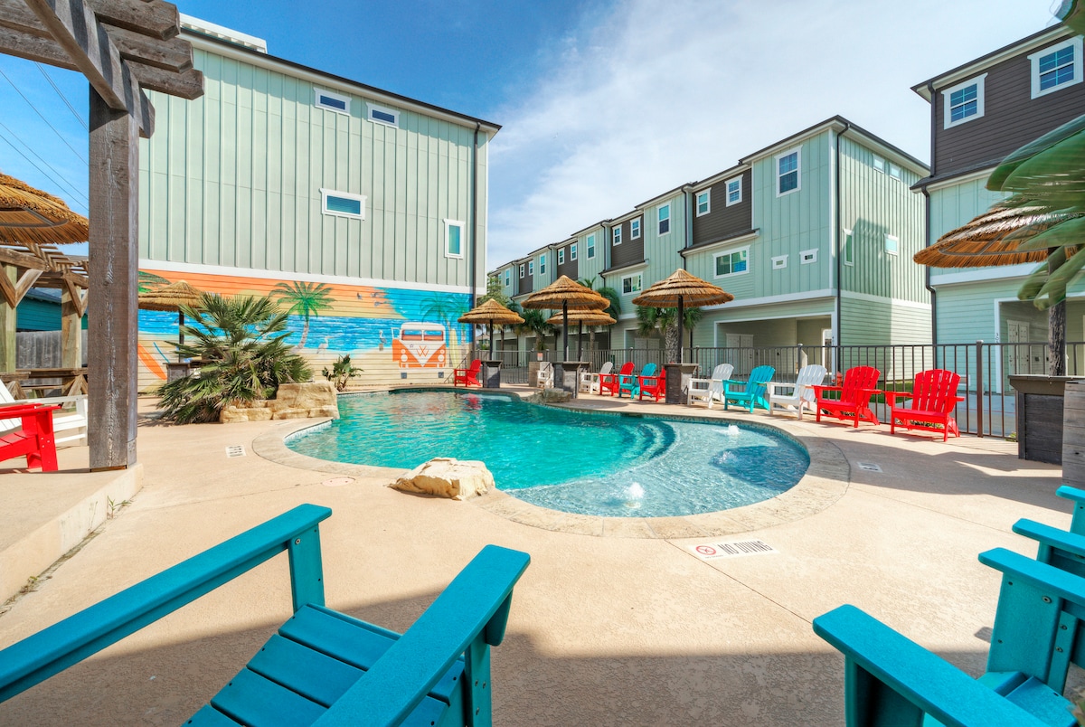 ★ „Divno smo se proveli u ovoj prelijepoj kući u nizu. Bilo je mnogo prostora za kretanje, a bazen je bio nevjerovatan! Vratićemo se!” ★ • Kristalno čist zajednički bazen + grijanje zimi • Elegantna 3BR/3BA kuća u nizu za 9 osoba • Udobna dnevna soba sa sjedištima na izvlačenje • Potpuno opremljena kuhinja • Prostrane spavaće sobe • Vozila za golf + pješke do centra Port Aransasa • Mašina za pranje i sušenje veša u sklopu objekta • Wi-Fi 4 minuta do plaže → Port Aransas 6 minuta → Medicinski naučni institut Univerziteta u Teksasu
