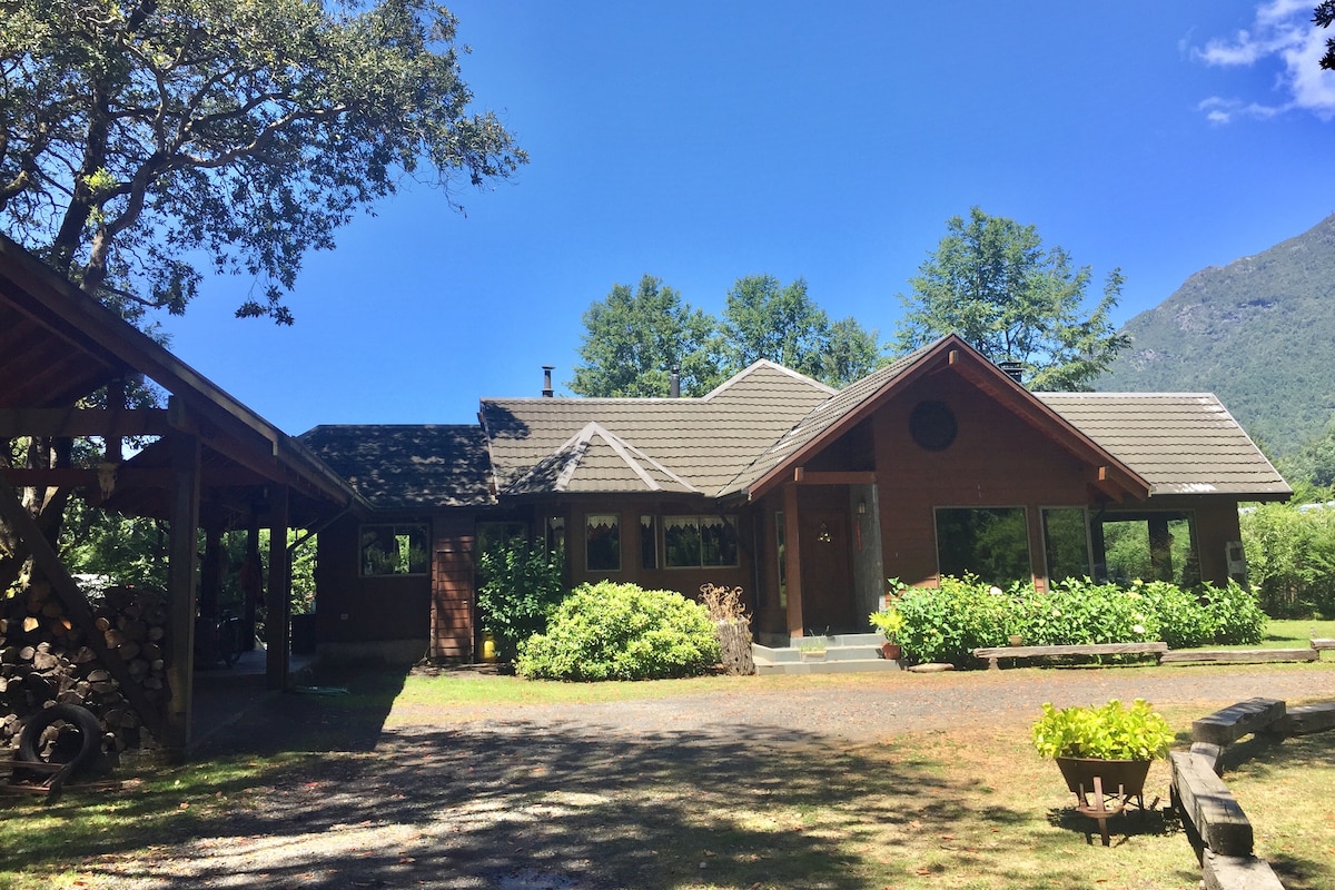 Casa campo con borde Río Trancura
