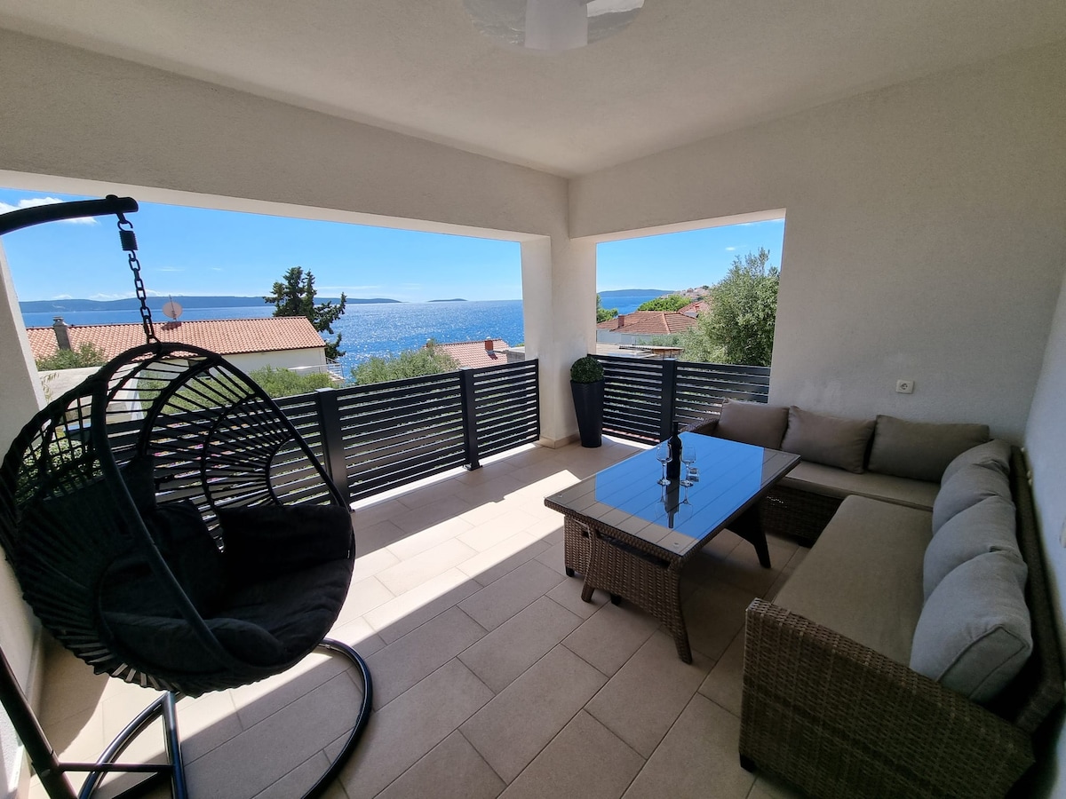 Modern apartment with pool and sea view and great location in Okrug Gornji, Čiovo. Only 2 minutes from the main beach and supermarket, 5 minutes with car or 10 minutes with ferry from the UNESCO protected town of Trogir. Have a pleasant holiday.