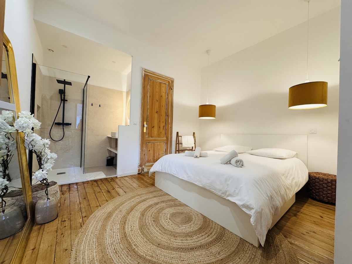 Dobro došli u moju boemsku malu čauru! Moj stan je veliki, svetao studio od 25 m2 koji se nalazi na 1. i poslednjem spratu jedne od najstarijih zgrada u La Teste-de-Buch. Dekoracija je urađena od mene, a stan je nedavno potpuno prefarban. Kuhinja je preuređena. Ako tražite čarobnu pauzu u zalivu Arkašon, moj stan ima sve što vam može zavesti šarmom starog, lepim dekorom i idealnom lokacijom.