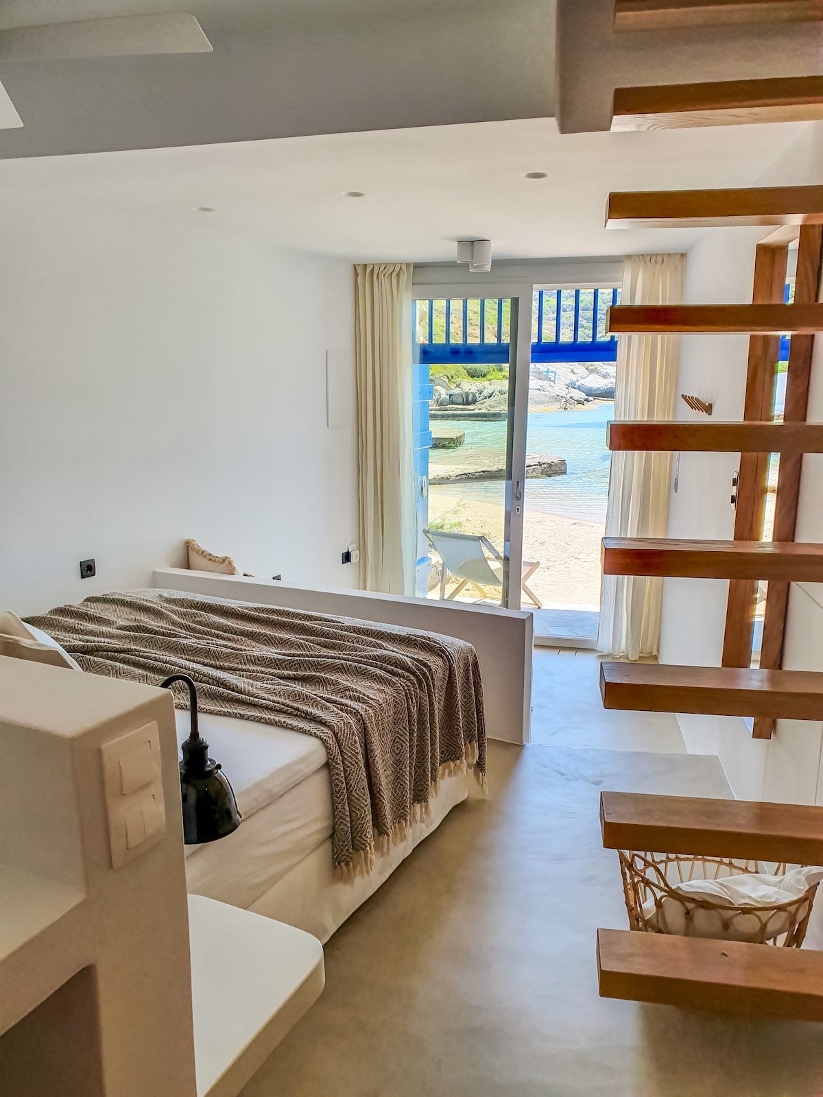 The Wind Apartment is a serene retreat nestled by the sea in Firopotamos, Milos—one of the most beautiful islands in the Mediterranean Sea. This charming apartment offers a unique experience, where the balcony literally extends over the water, and the beach, bustling with people, stretches out at your feet.