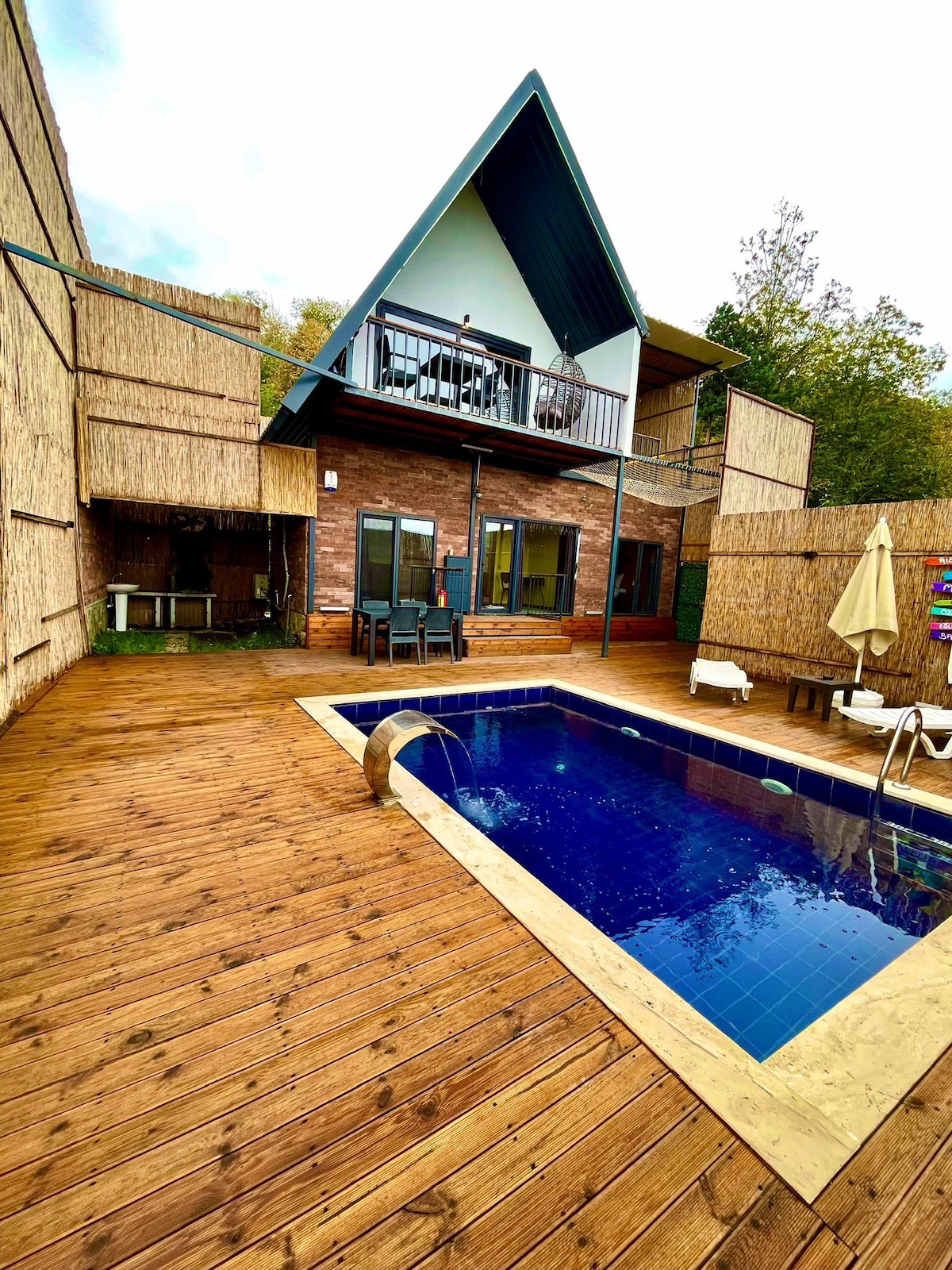 Sakin konumda özel havuzlu ahşap ev