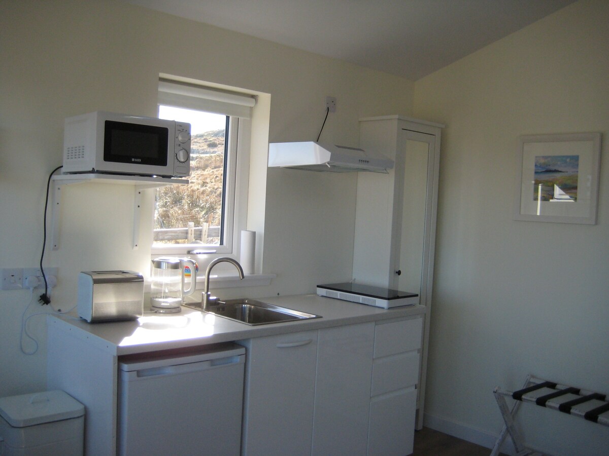 The Hide is a super get-away for everyone traveling around Scotland on the NC500 or on your own adventure looking for a unique stay. Skoro van mreže, ima udoban krevet, centralni gorionik na drva i spektakularan pogled. To je savršena stepenica za potpuno iskustvo van mreže, namijenjena ljudima koji su znatiželjni da žive van mreže, ali i da mogu da napune telefon, kuvaju čajnik i imaju vrući tuš! Od sredine novembra do marta imamo zimski režim jer voda može da se smrzne.