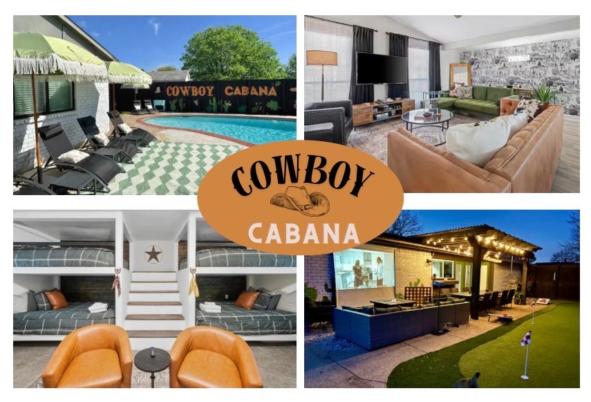 Featured on TV's 'Staycation: Dallas!', our vibrant Cowboy Cabana is the ultimate DFW getaway for large groups. This western-themed home comfortably fits your crew and boasts a private backyard oasis with a pool, hot tub, and outdoor projector. Enjoy a stylish, fully-stocked space designed for fun and relaxation, located minutes from Joe Pool Lake and major DFW attractions. Perfect for family fun and unforgettable celebrations!