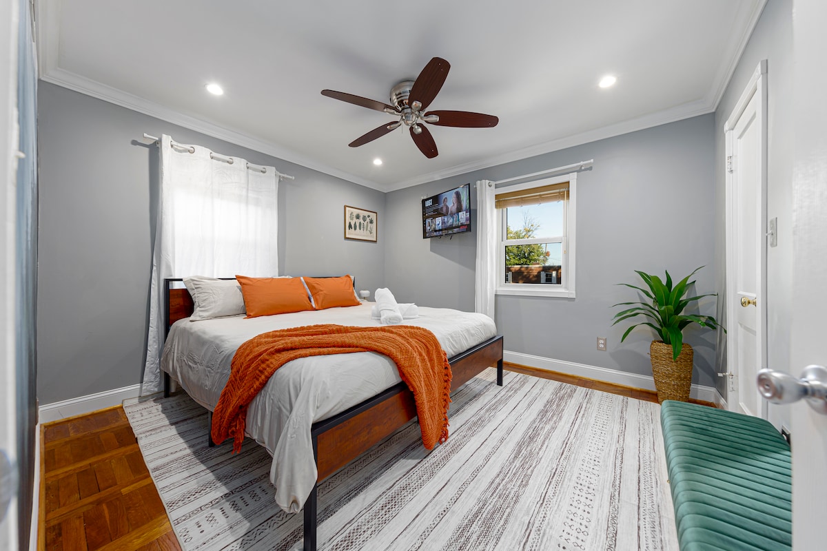 RETKA PRILIKA — spavaća soba i kupatilo na glavnom nivou bez stepenica! Dobro došli u svoje elegantno utočište u Vašingtonu! Ovaj potpuno renovirani dom sa 5 spavaćih soba i 4 kupatila nudi 3500 kvadratnih metara života otvorenog koncepta, na samo 3 minuta od metroa i 10 minuta od Bijele kuće. Uživajte u besplatnom parkingu na ulici. Savršeno za porodice ili poslovne putnike sa spavaćom sobom na glavnom spratu, profesionalnom kuhinjom, dvokrevetnim dnevnim boravcima, brzim Wi-Fi mrežom i pametnim televizorima. Rezervišite smještaj danas i doživite Vašington u udobnosti i stilu.