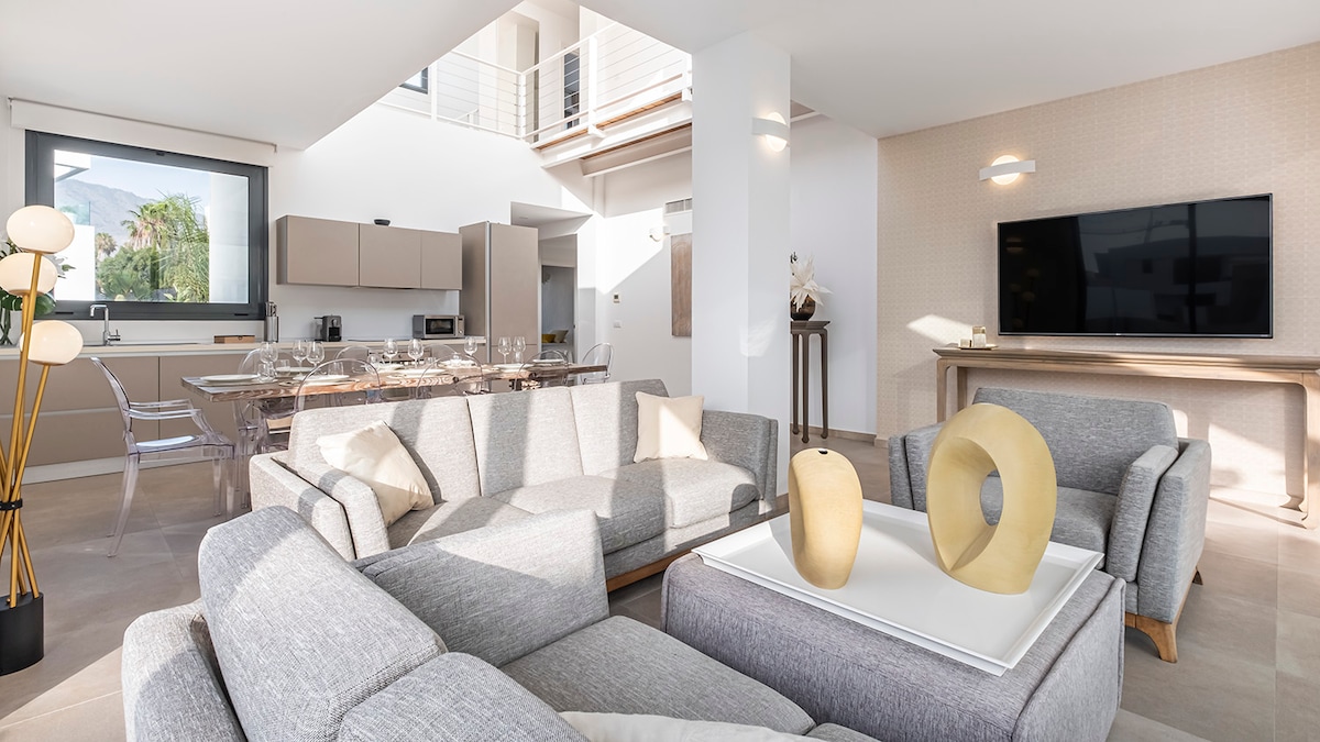 We have the perfect holiday spot for you!! Located in the Costa Adeje, San Eugenio area is this chic and stylish 2 bedroom villa with a private pool. There is an open-plan kitchen-living área that boasts a very cozy atmosphere. You can enjoy delicious meals on the breakfast bar and also get comfortable on the sofa in front of the 46 inches Smart TV. The exterior of the property is situated in a slightly elevated position which results in sea views from the terrace. Family discount available.