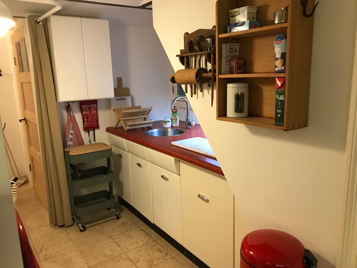 Simpatičan i udoban stan u bašti (65 m2) u popularnom Spijkerkwartiru u Arnhemu, samo za vas! Prostrano kupatilo sa zasebnom tuš-kabinom i kadom. Udobna dnevna soba, umjetnička dekoracija i slike. Autentična Poggenpohl kuhinja iz 70-ih sa mašinom za pranje sudova. Supermarket je odmah iza ugla, baš kao i najbolji mali kafić i najukusnija italijanska hrana. Centar grada je udaljen 2 minuta hoda, a najbliža željeznička stanica 5 minuta. Dostupno za duže boravke i nepušače.