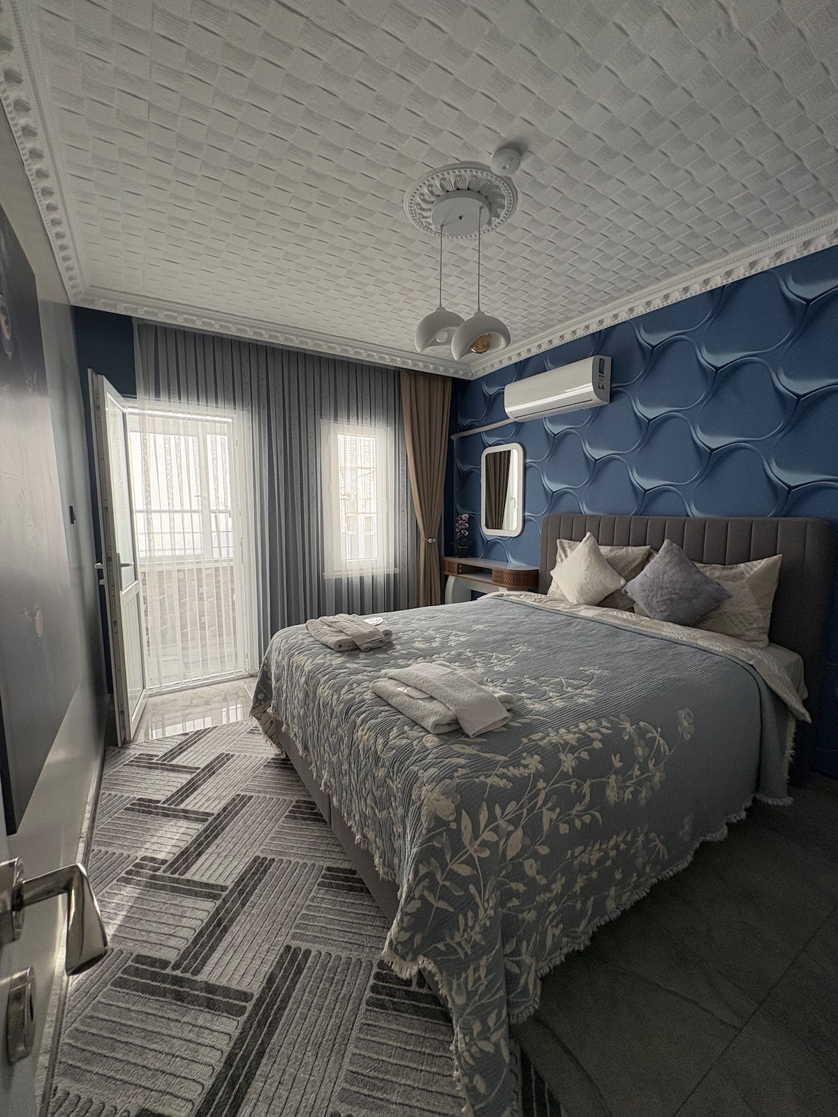 Naš stan se nalazi od vrlog limuna i ima pogled na more. Naš bazen je pun između 15. juna i 7. septembra. U kompleksu se nalaze igralište i roštilj. Sve sobe su klimatizovane. Veoma je blizu istorijskih i turističkih mesta. Stan je nula, a predmeti su nula. Postoji L sofa koja se može otvoriti bračnim krevetom i dušekom na podu na izvlačenje. Udaljen je 100 metara od mora i na autoputu d-400.