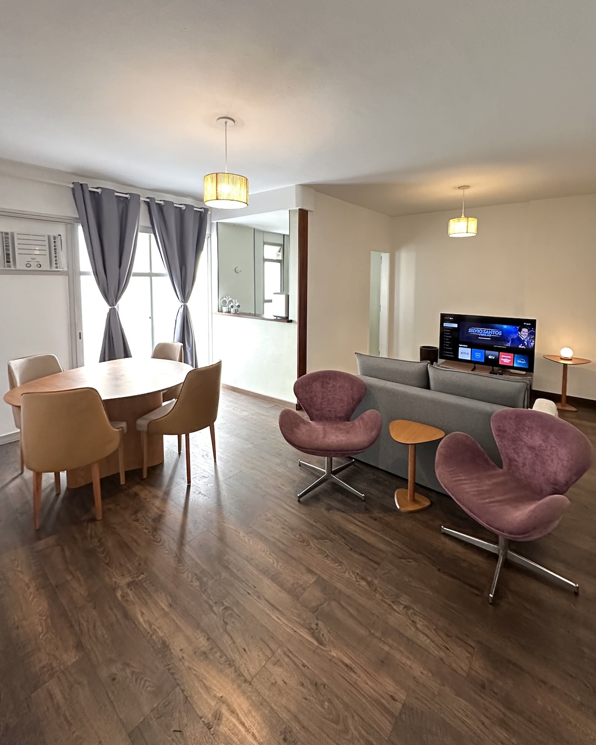 Apartment for 6 people maximum to building regulation, at 3 minutes from Copacabana beach, post 6, with 3 bedrooms, 2 bathrooms, kitchen, air conditioning and central hot water. Partial view of the sea. 4 TV with cable + WIFI and Netflix Apartamento para um máximo de 6 pessoas, de acordo com os regulamentos de construção, a 3 minutos da praia de Copacabana, posto 6, com 3 quartos, 2 banheiros, cozinha, ar condicionado e central de água quente. Sala de estar, sala de jantar e varanda. 4 TV + WIFI